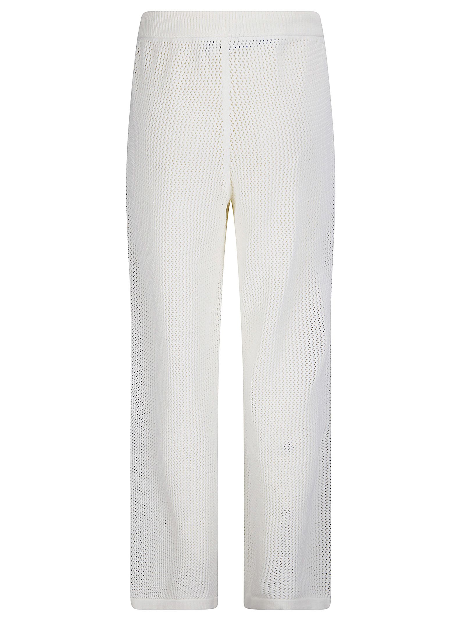 Pantaloni sportivi realizzati in crochet morbido e traspirante, orli a coste che creano un taglio leggermente affusolato, vestibilità regolare