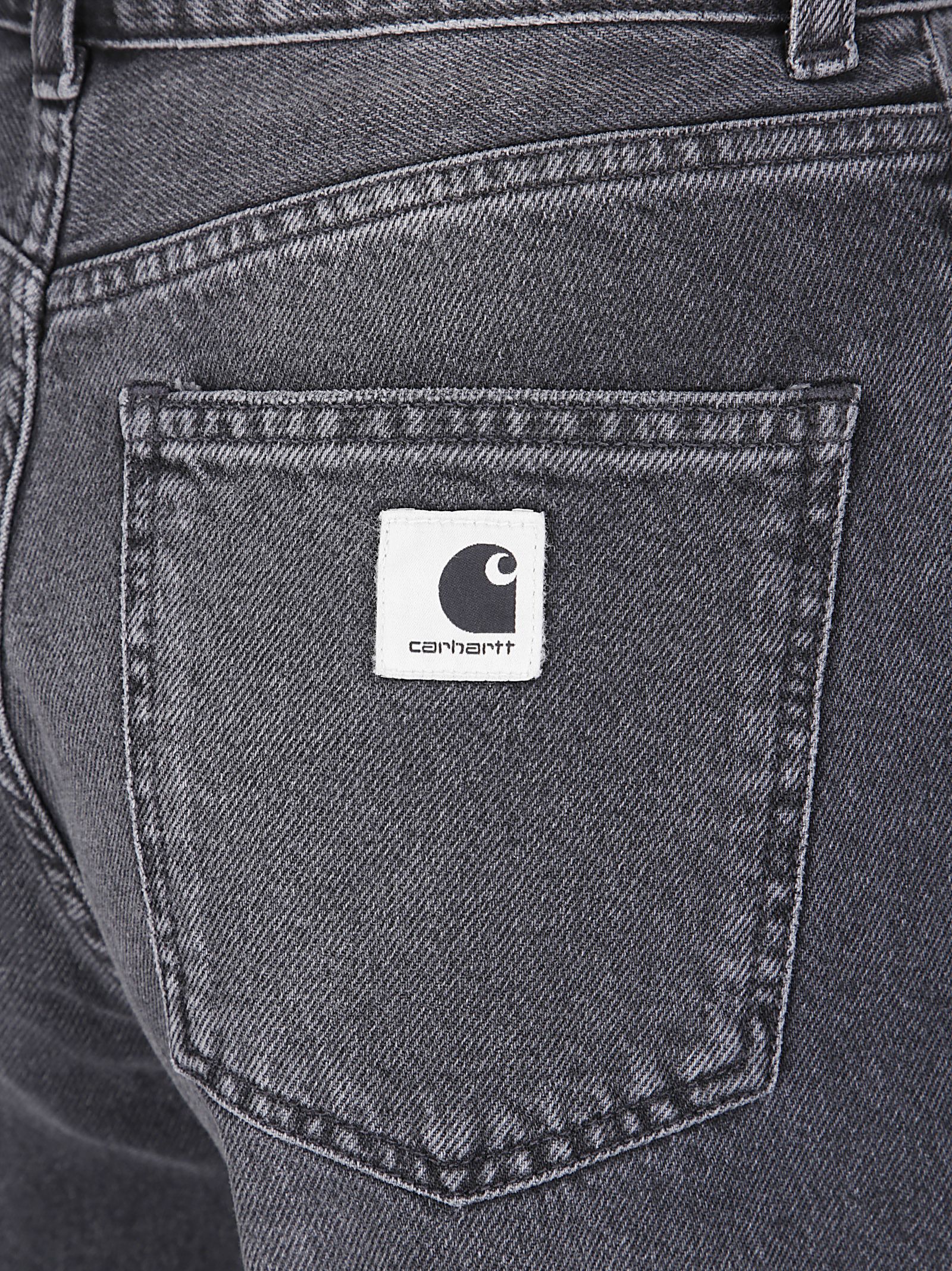 Jeans cinque tasche, passanti per cintura in vita, vestibilità ampia, gamba dritta.