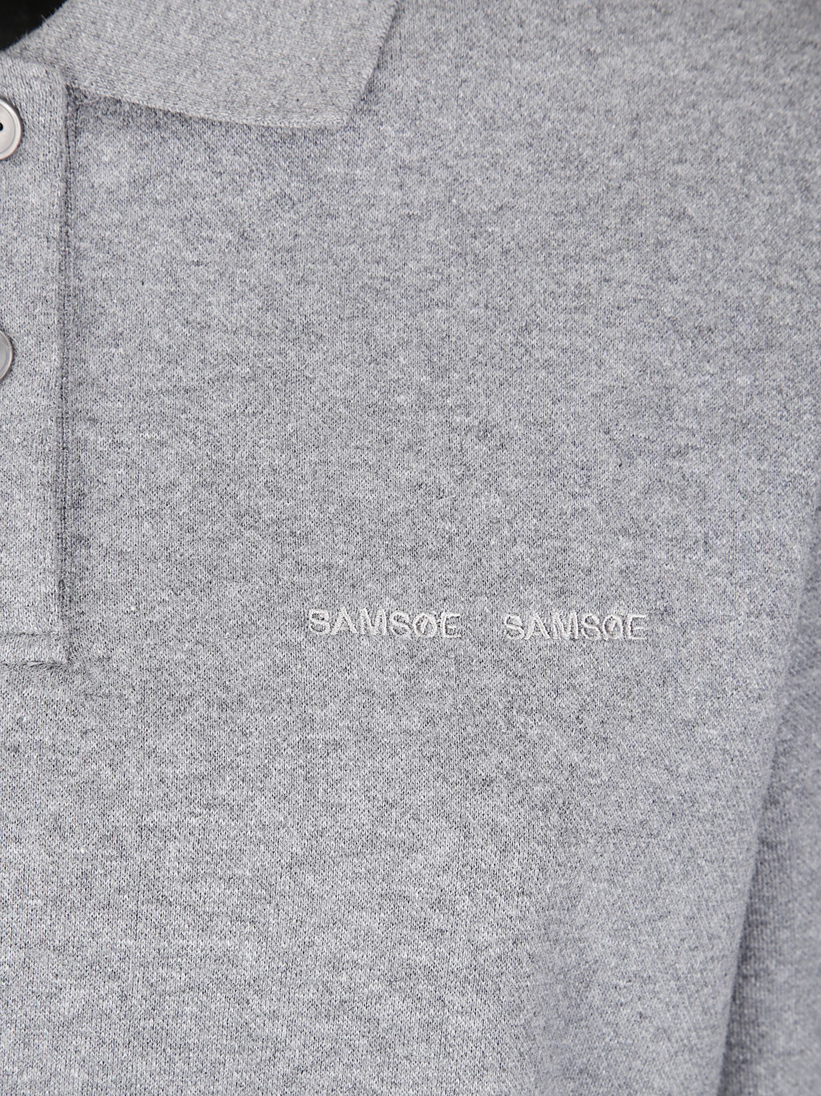 Maglia polo maniche lunghe, colletto a punta con patta abbottonata, logo ricamato sul petto, vestibilità rilassata.