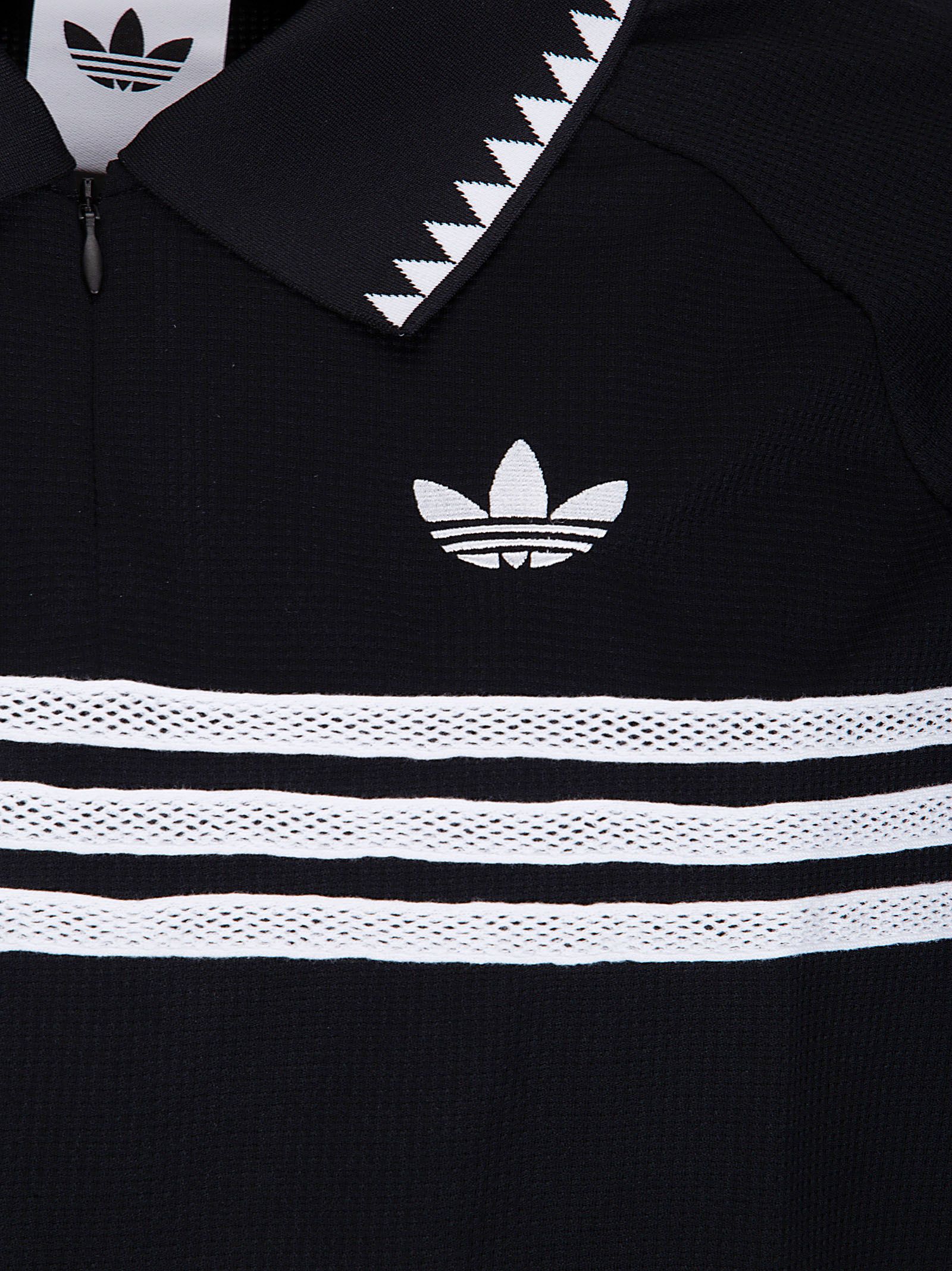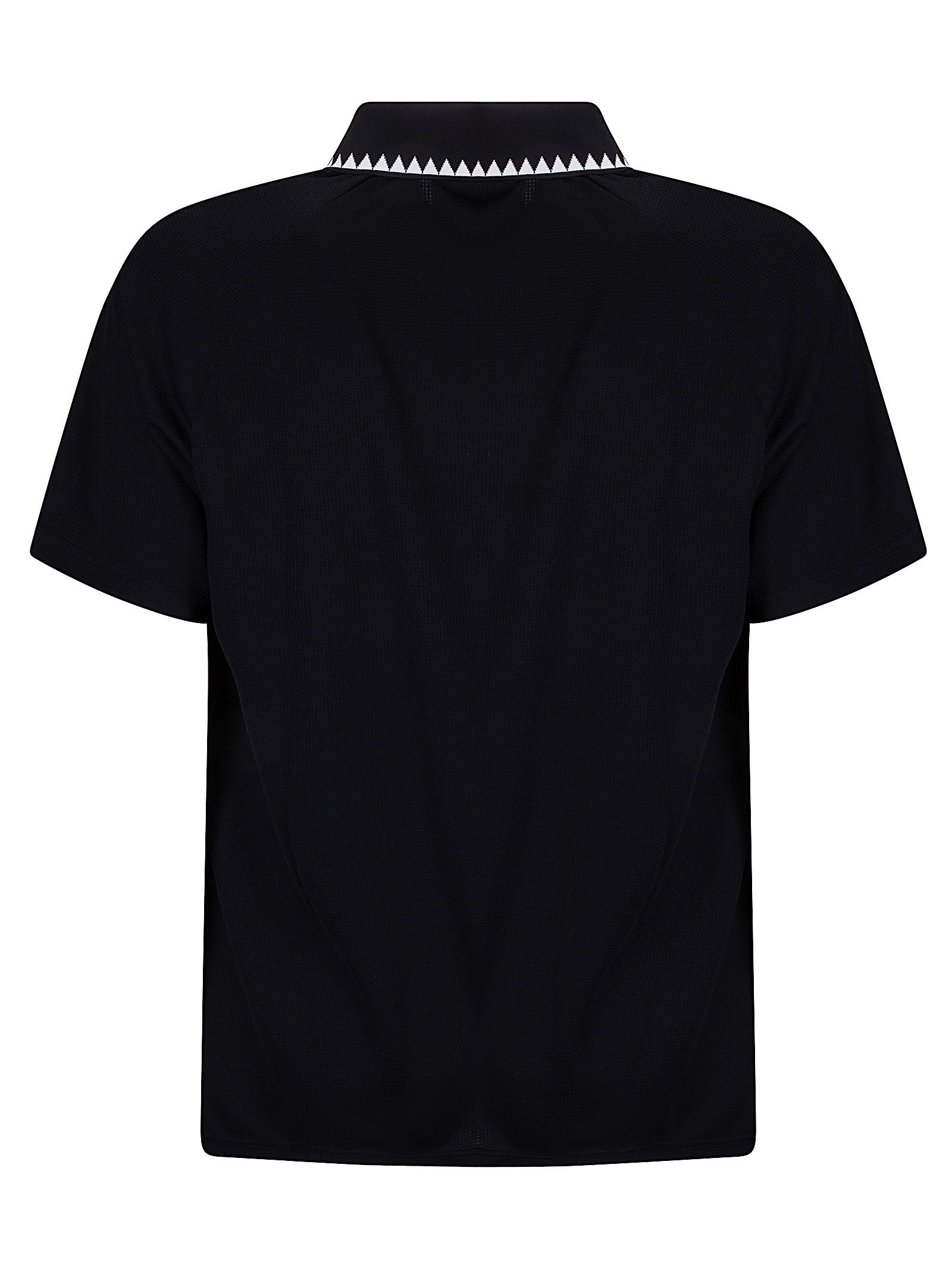 Tshirt in tessuto tecnico, colletto a contrasto con stampa, zip frontale, fit comodo.