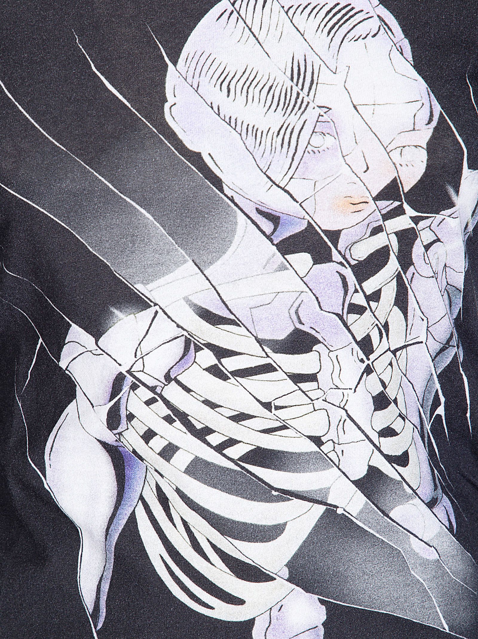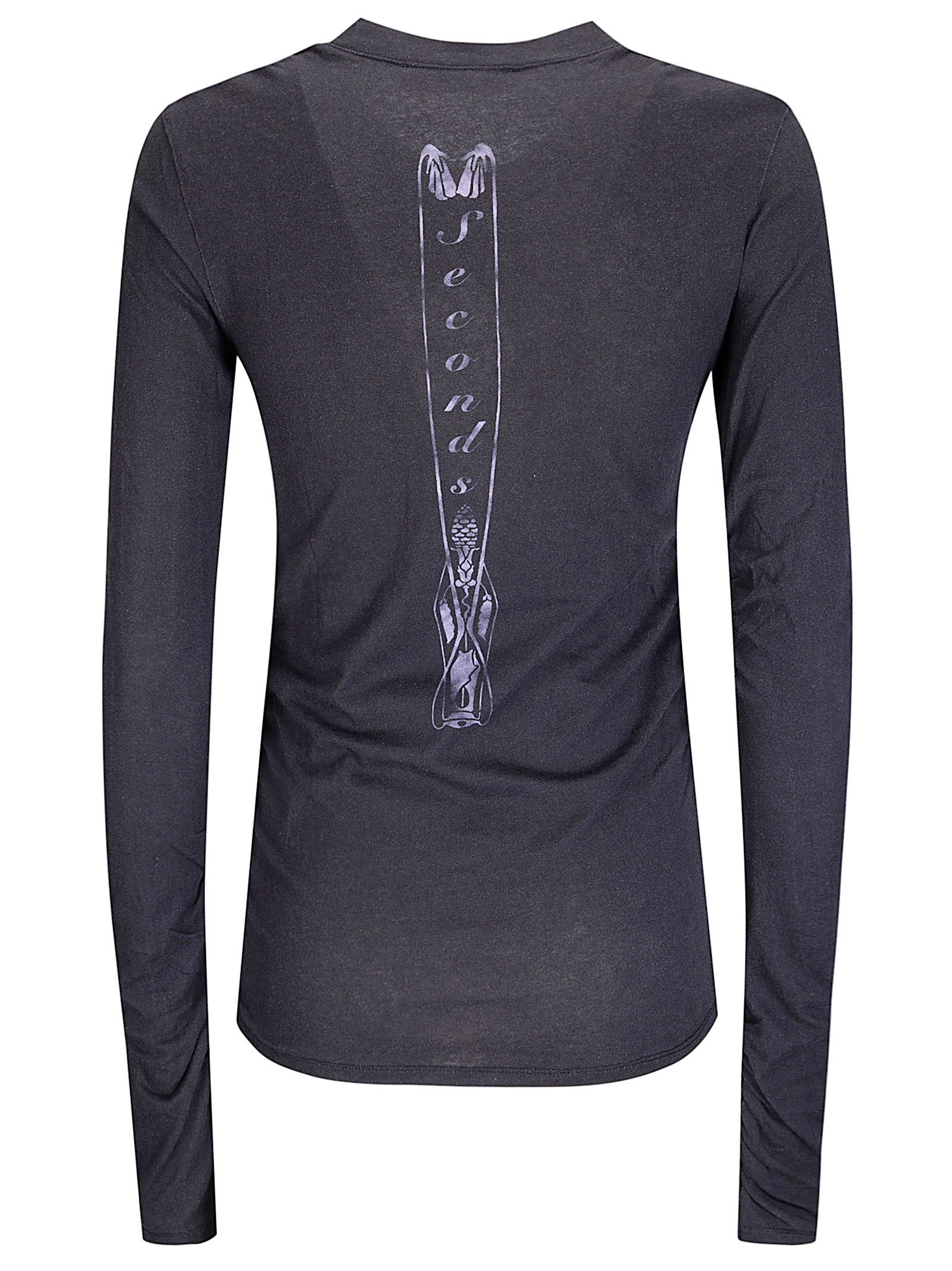 Maglia in jersey, vestibilità aderente, cuciture arricciate e stampa frontale.