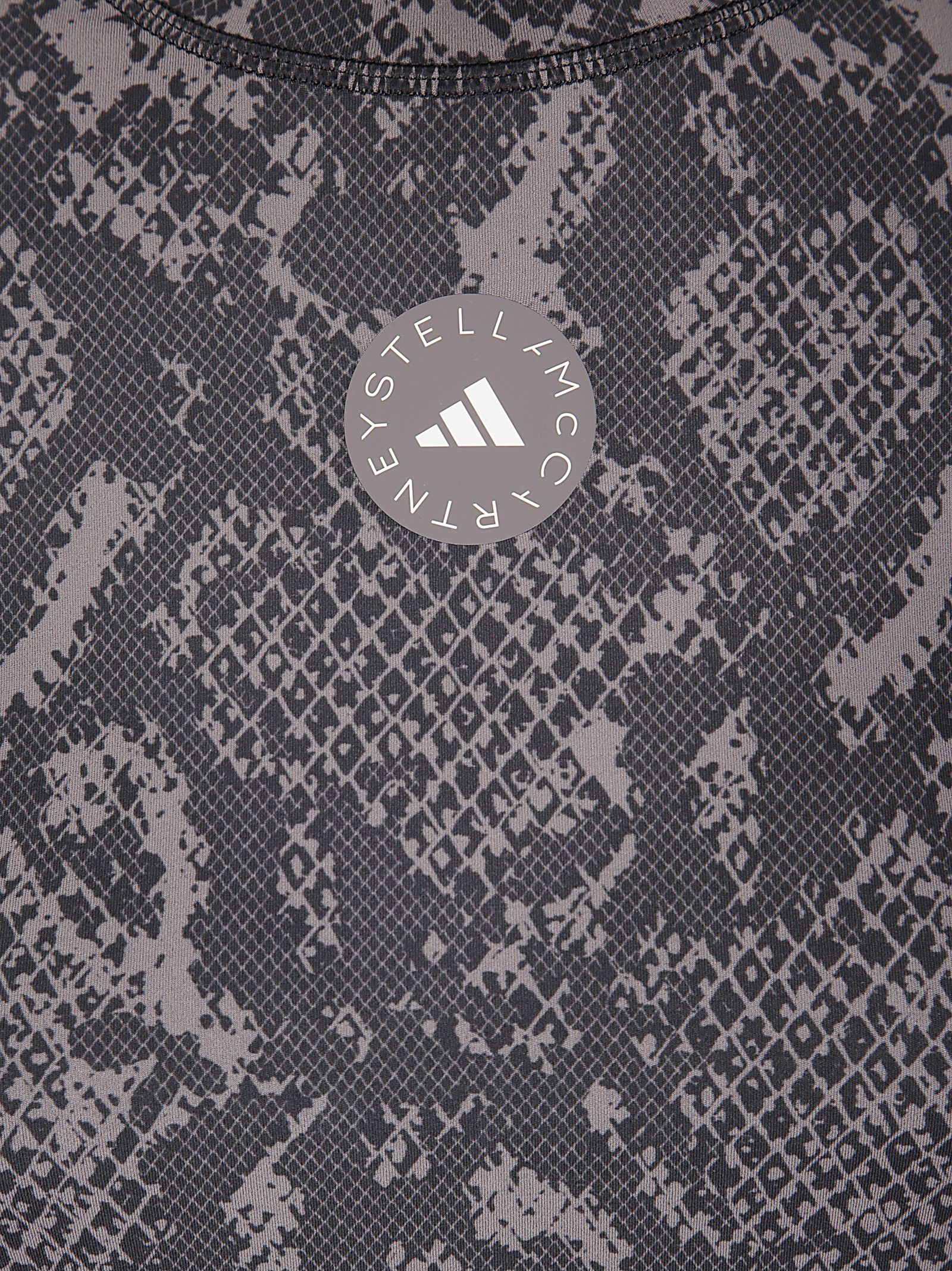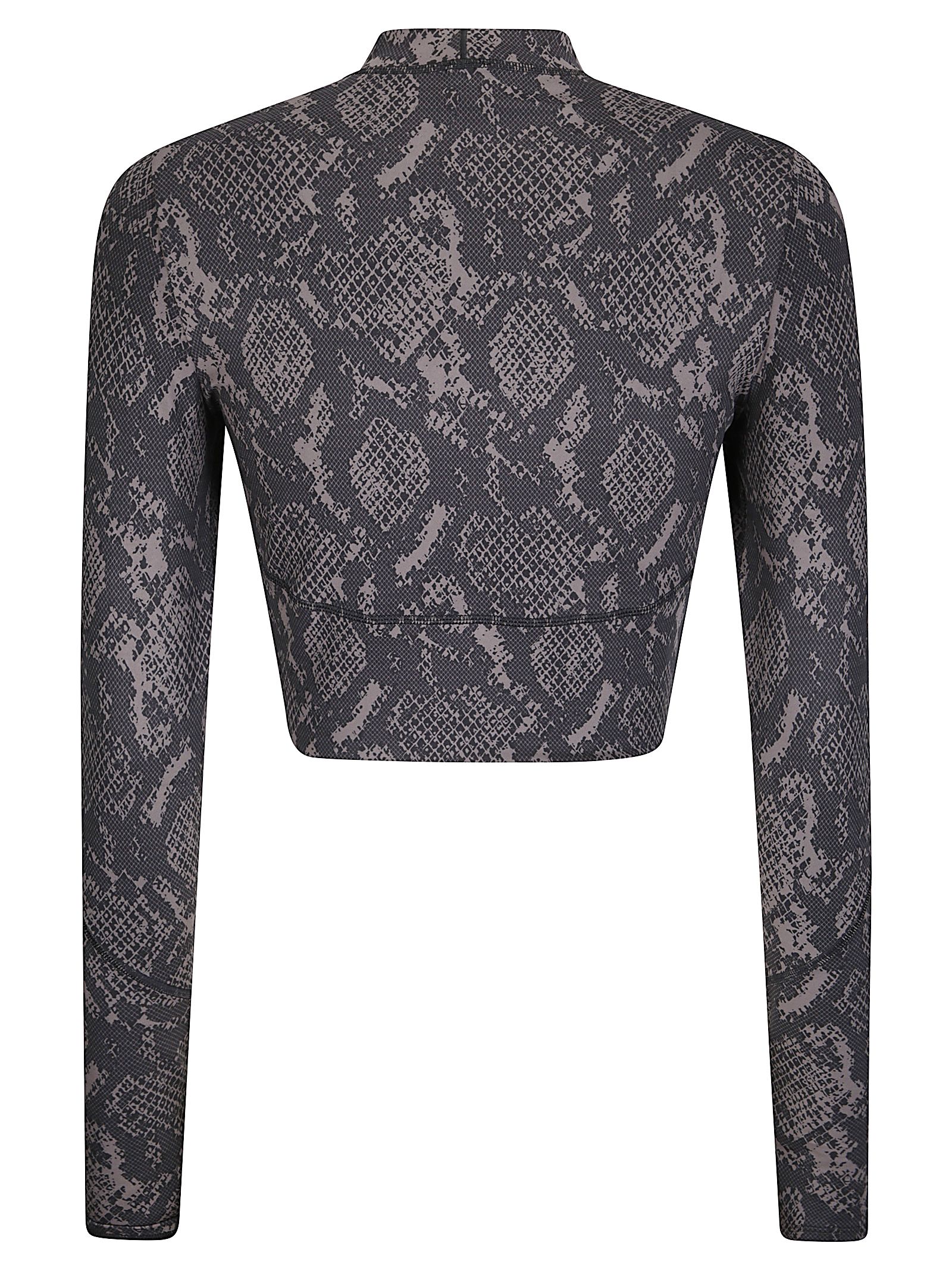 Top corto in tessuto tecnico, slim fit, stampa pitonata, cuciture a contrasto, maniche con buco per il pollice.