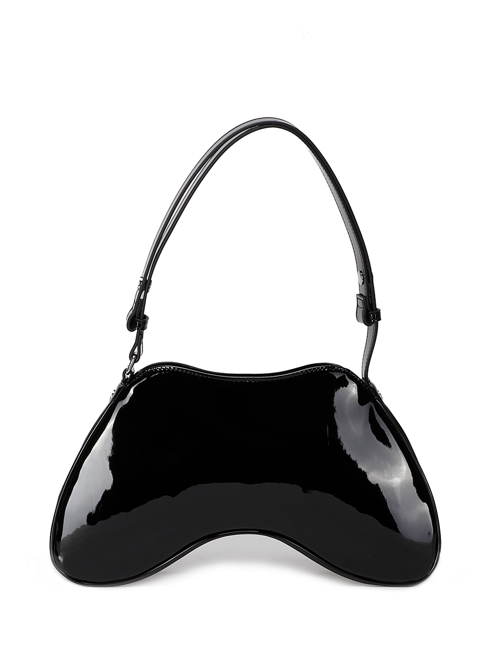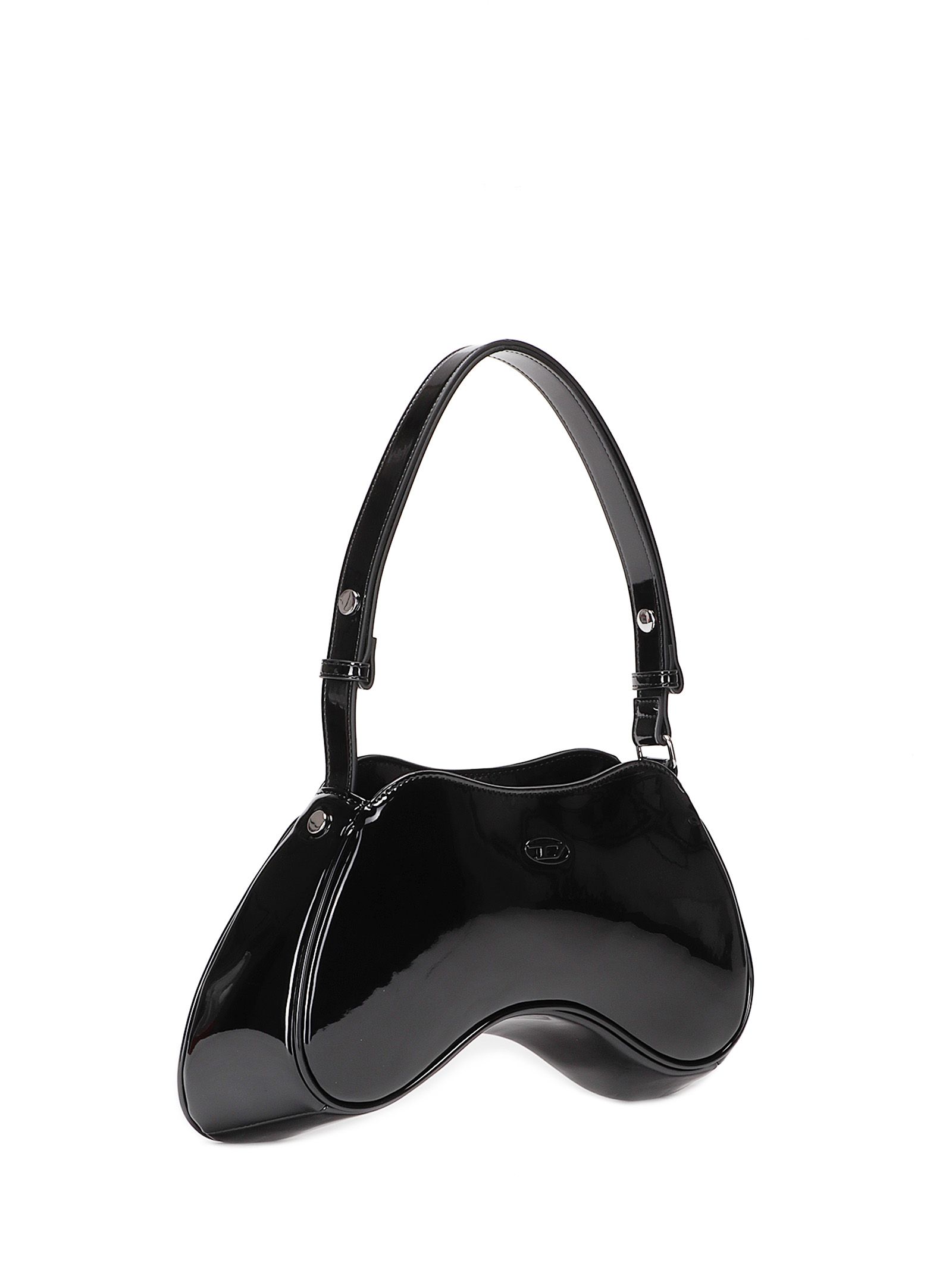 Borsa strutturata e compatta, manico regolabile, finitura lucida, chiusura con zip, tasca interna con zip, decorazione Oval D.