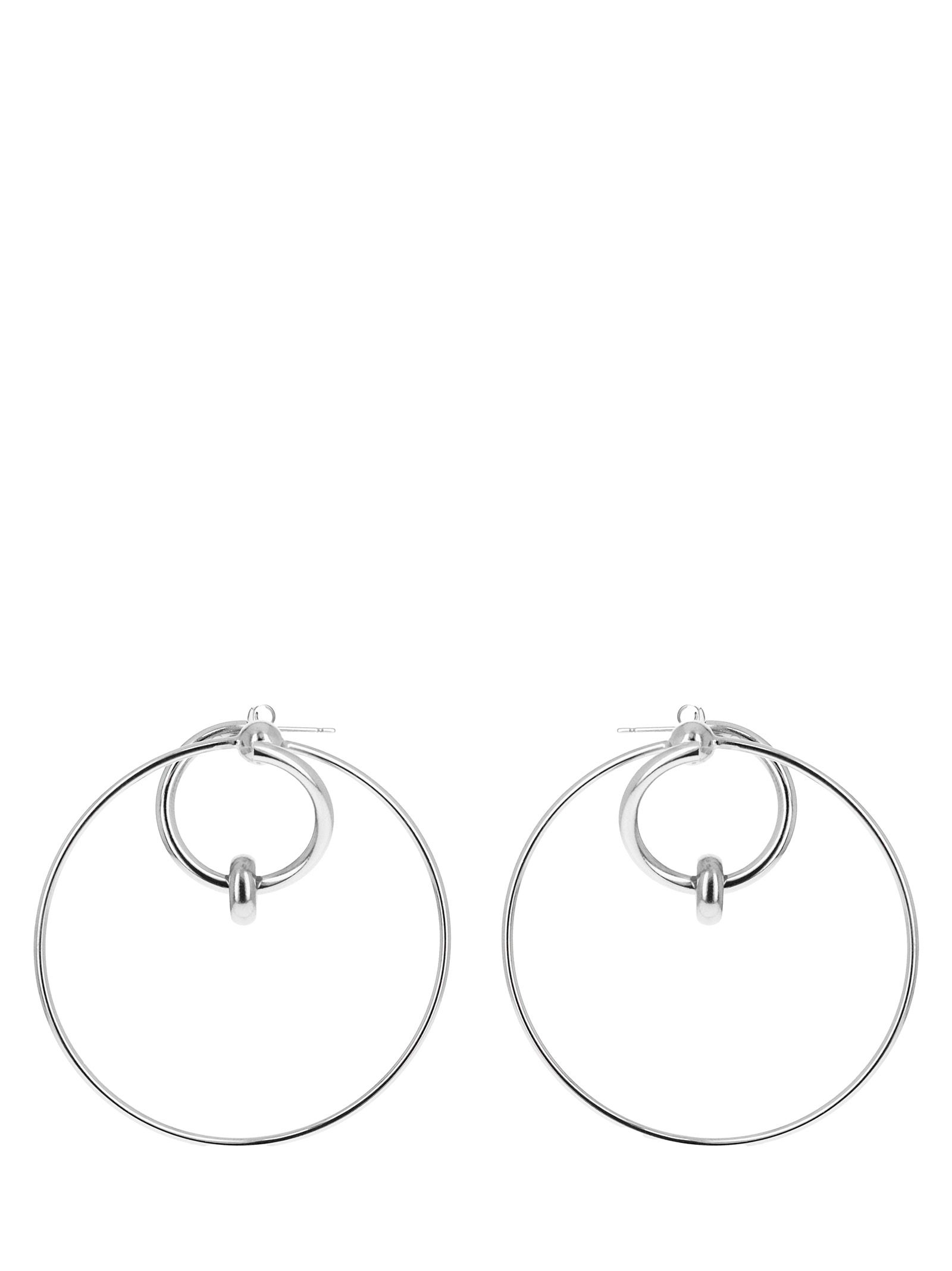 Coppia di orecchini argento a spirale con chiusura a farfallina, cerchi medio grandi, cerchiolino removibile.