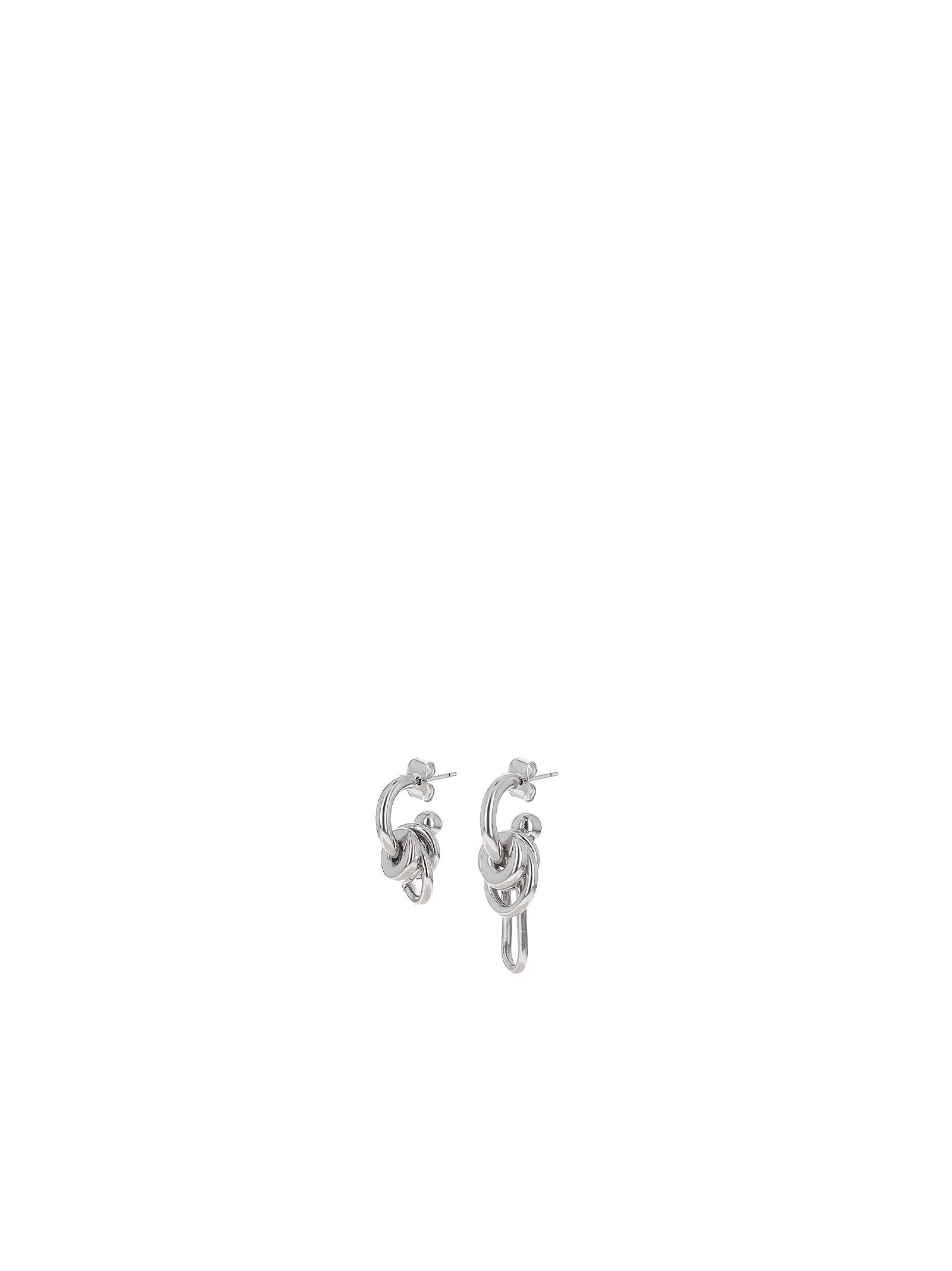 Coppia di orecchini asimmetrici argento, applicazioni miste, chiusura con farfallina, cerchiolini piccoli.