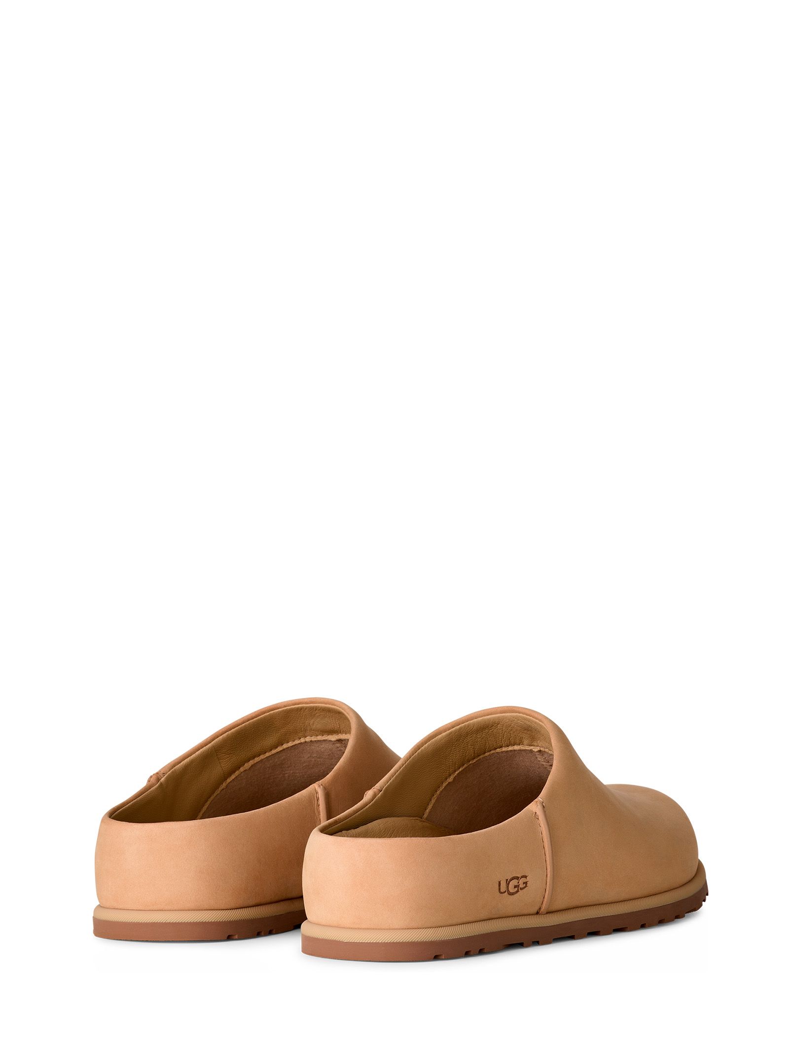 Ciabatte in pelle liscia modello Otzo Clog, interno foderato in pelle, suola bassa, logo laterale.