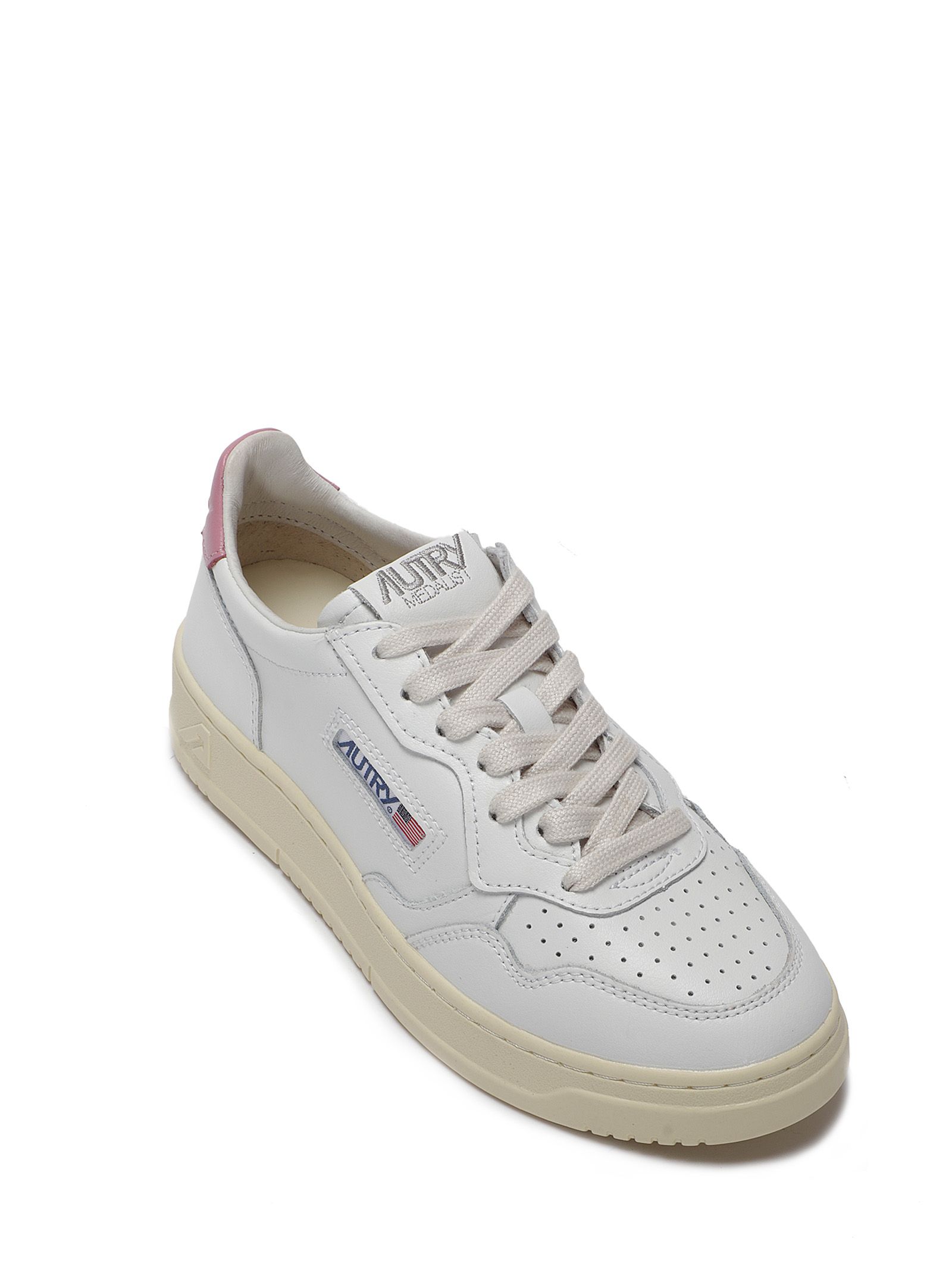 Sneakers con tomaia in pelle, punta con microfori, lacci piatti in cotone, linguetta imbottita, suola in gomma.