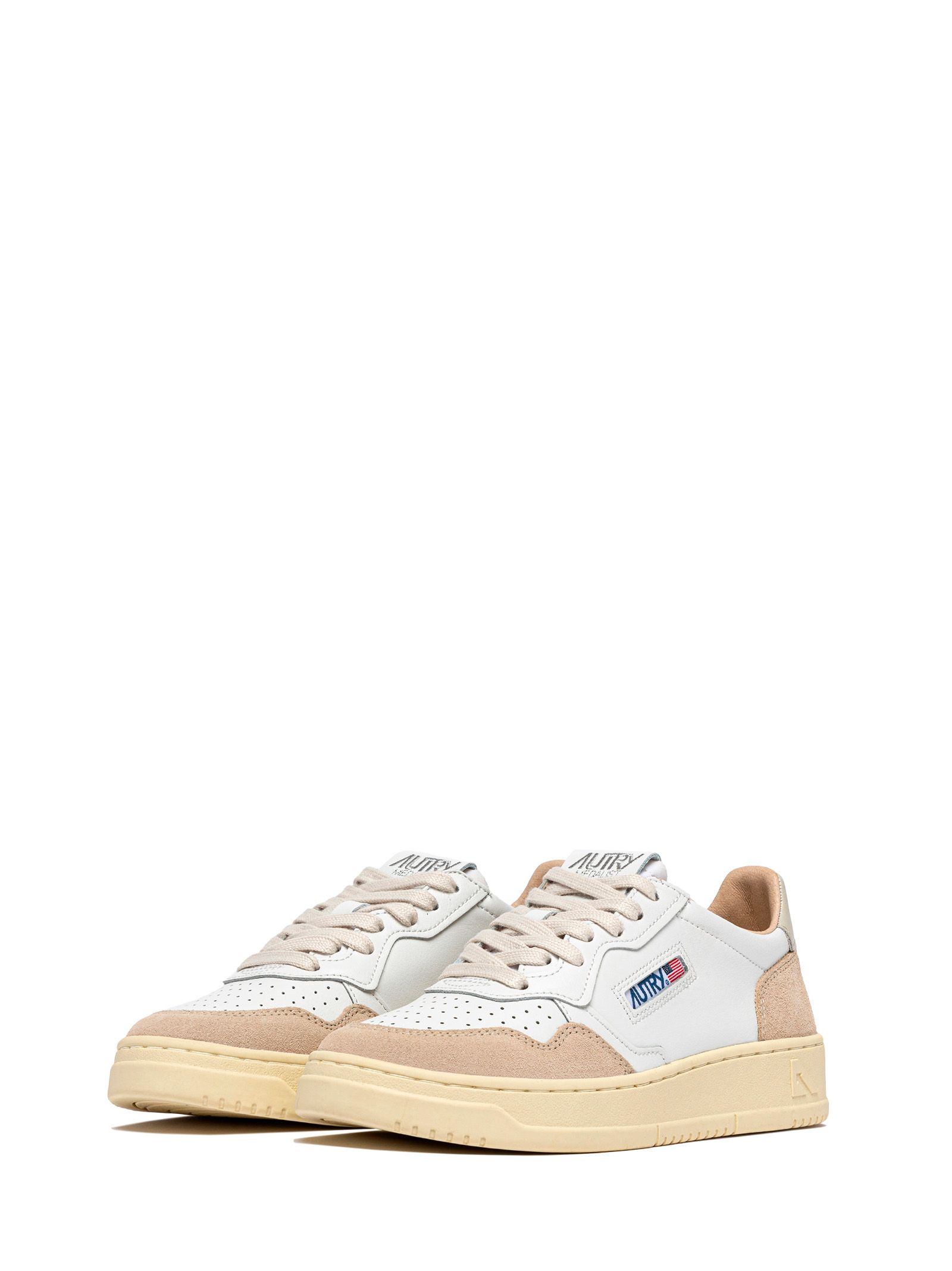 Sneakers in pelle modello Medalist, dettagli in suede a contrasto, suola in gomma, tallone beige chiaro.