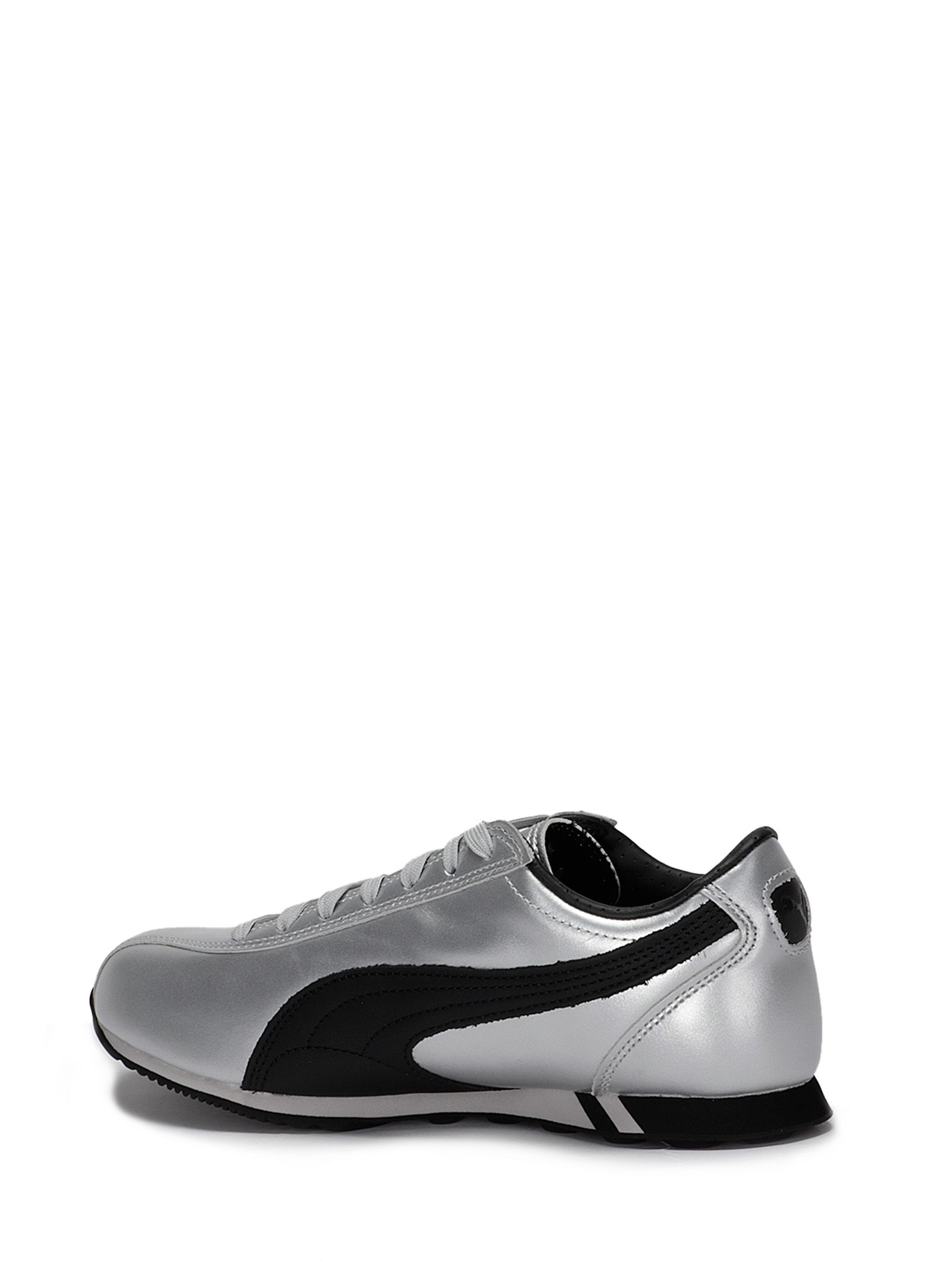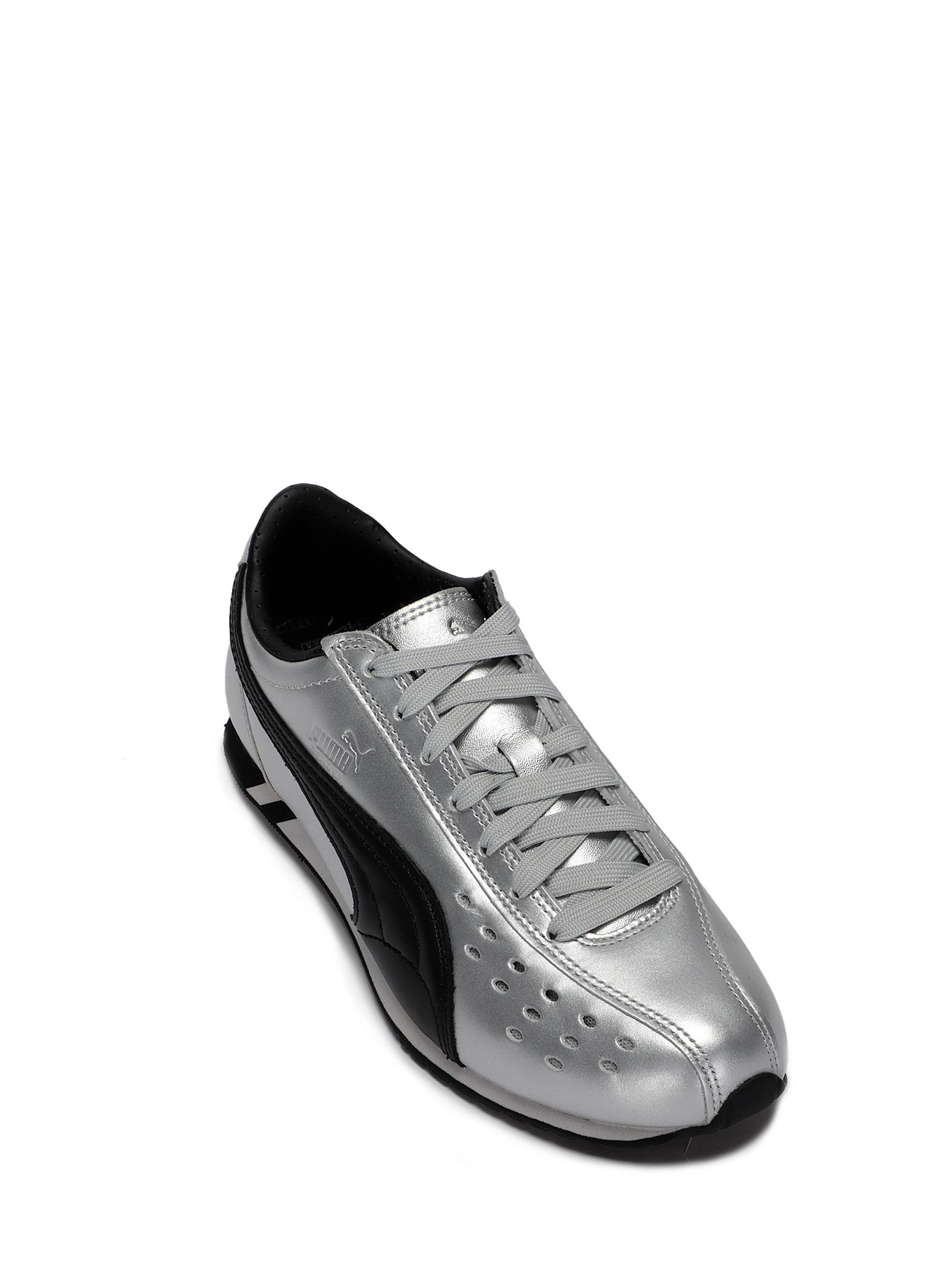 Sneakers con tomaia in pelle effetto metallizzato, striscia sagomata a contrasto in pelle, suola in gomma.