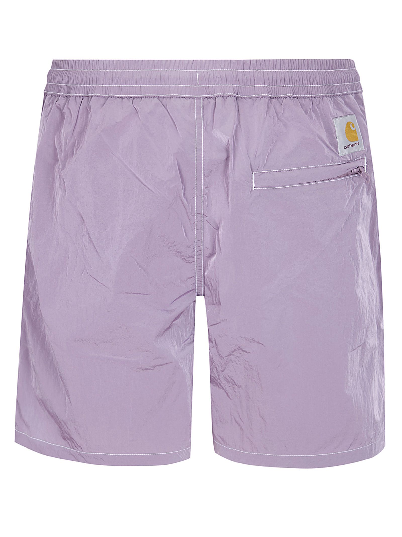 Costume con vita elasticizzata e coulisse, tasche laterali, ltasca con zip posteriore, logo frontale.