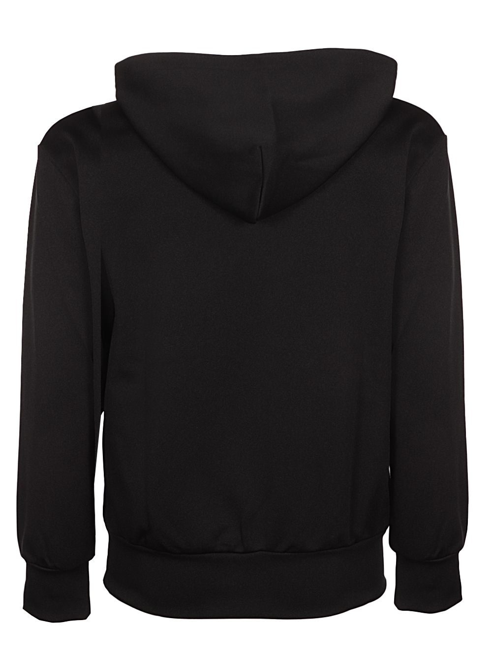 Felpa con cappuccio nera con logo, chiusura con zip e tasche frontali.