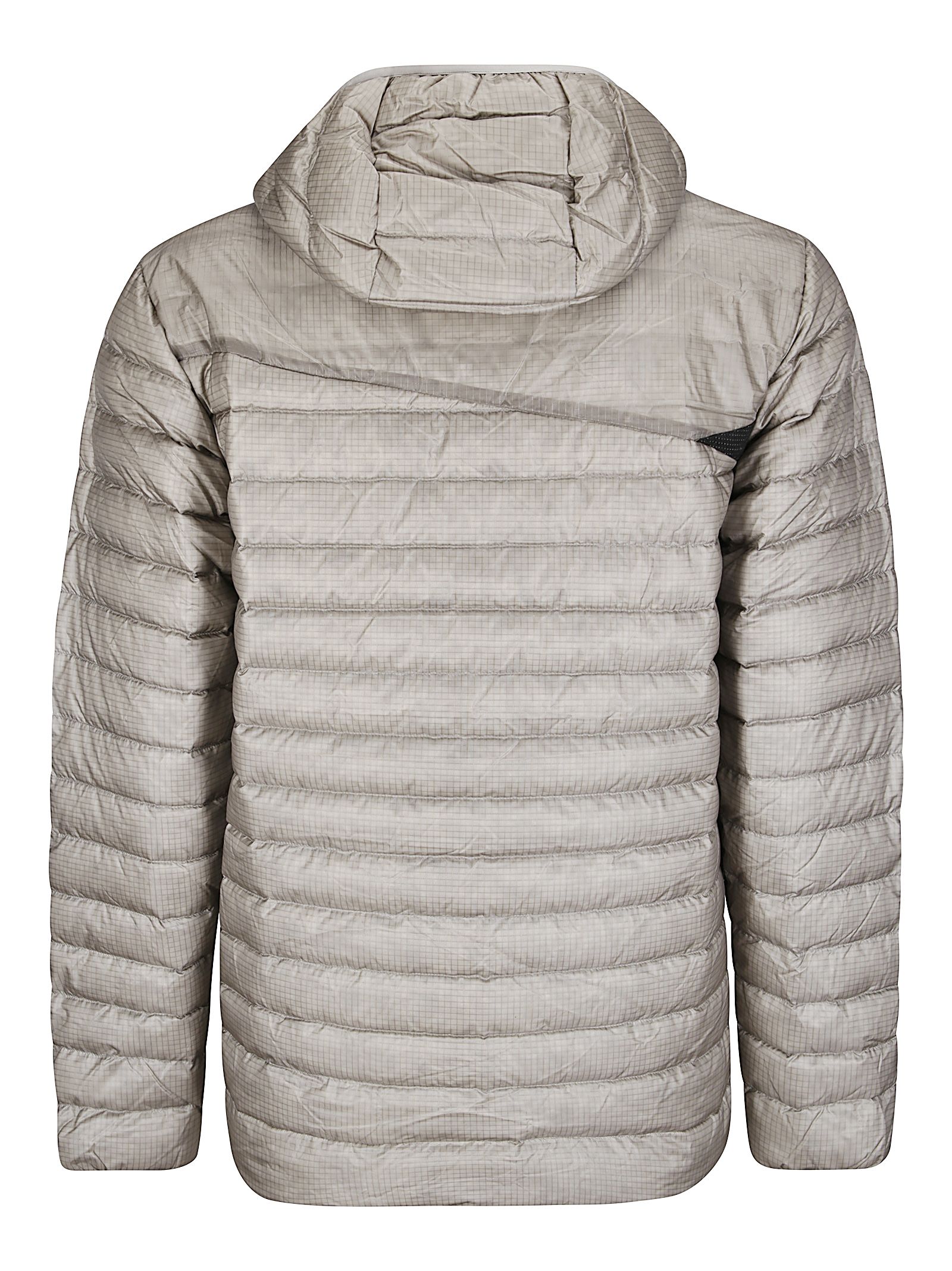 Giacca in materiale tecnico adatta a climi rigidi, cappuccio, chiusura con zip doppio cursore, ricamo sul petto.