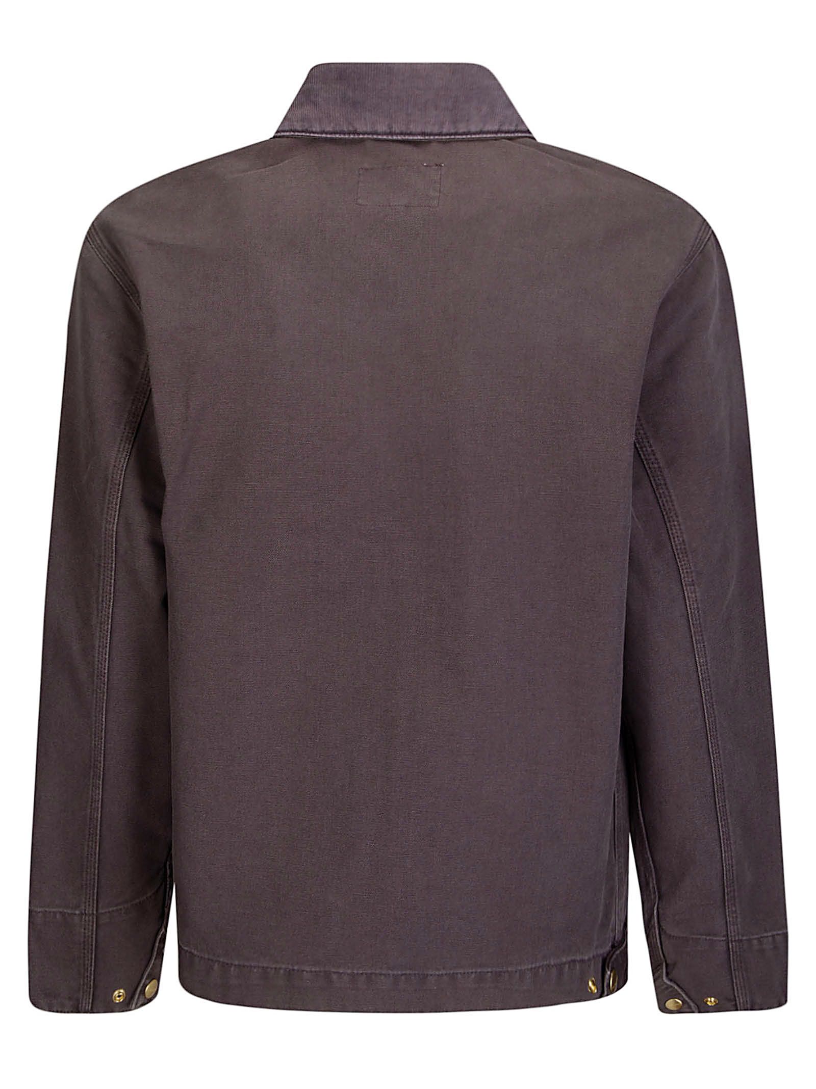 Giacca Detroit in cotone organico, colletto a contrasto a costine, chiusura con zip, patta logata frontale.