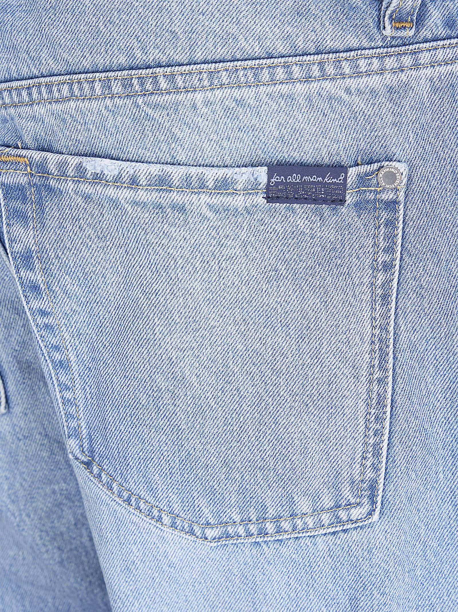 Pantalone jeans cinque tasche, chiusura con bottone e zip, regular fit.