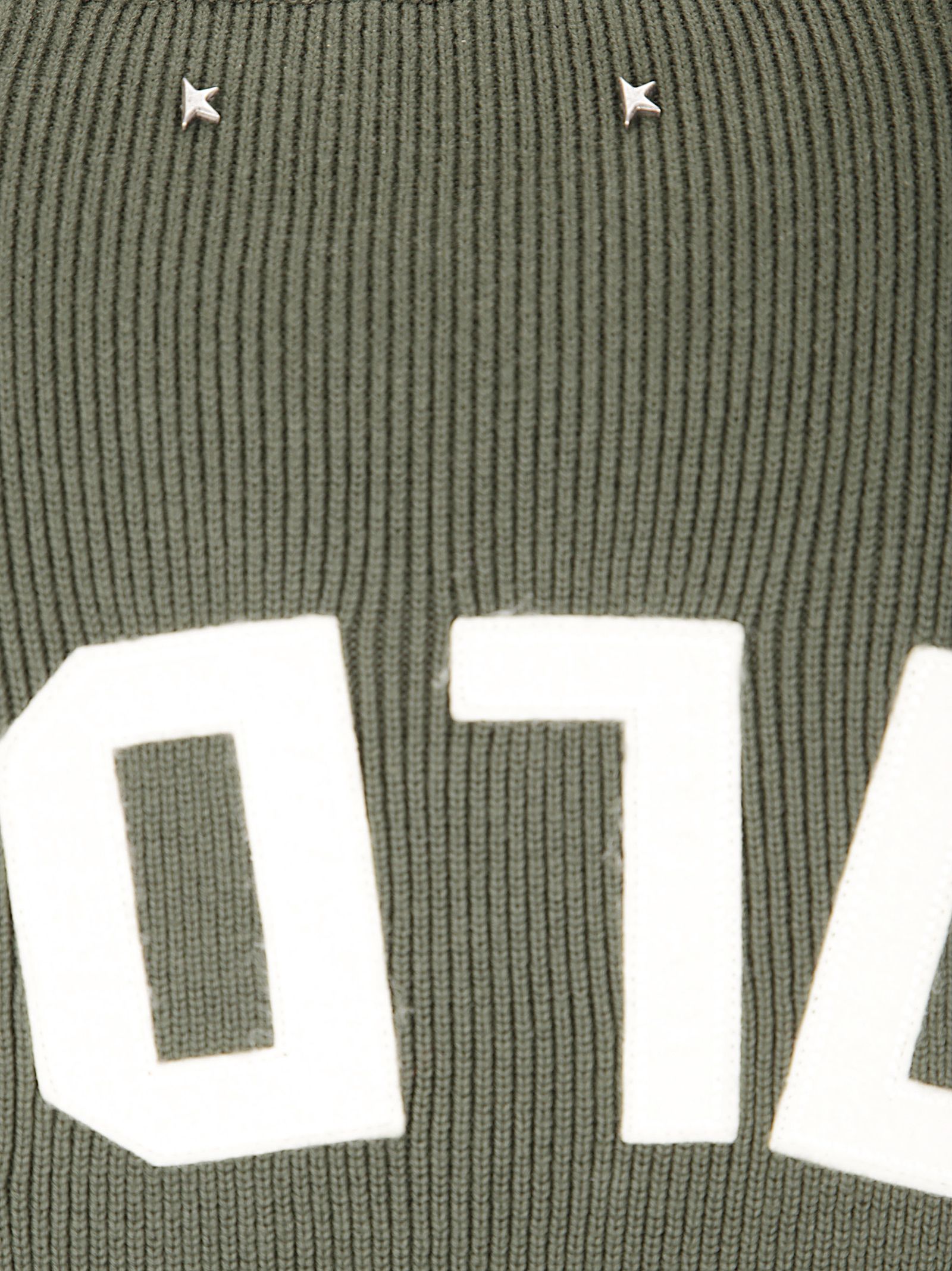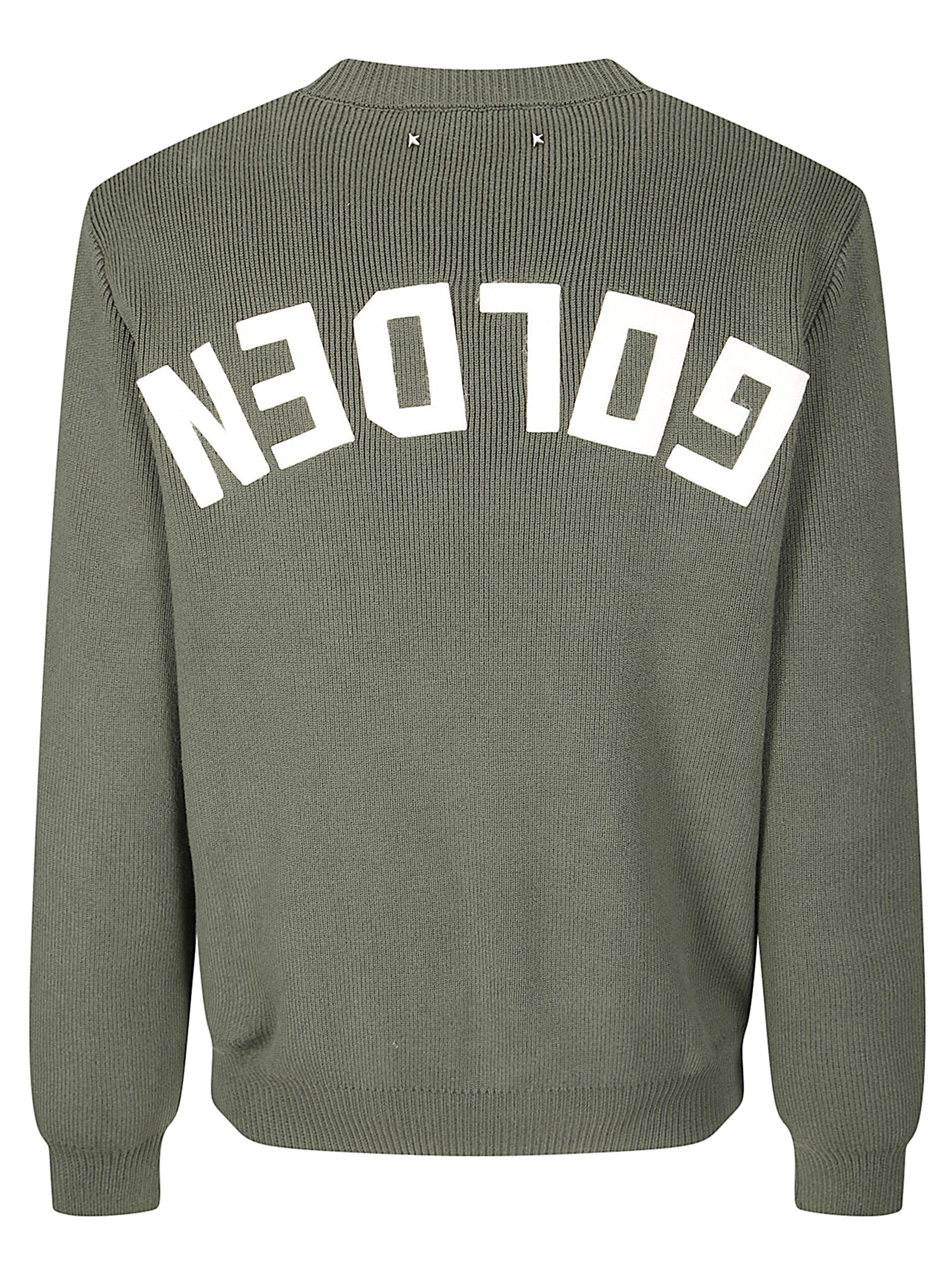 Maglione in cotone a maglia spessa, collo tondo, scritta applicata sul retro, regular fit.