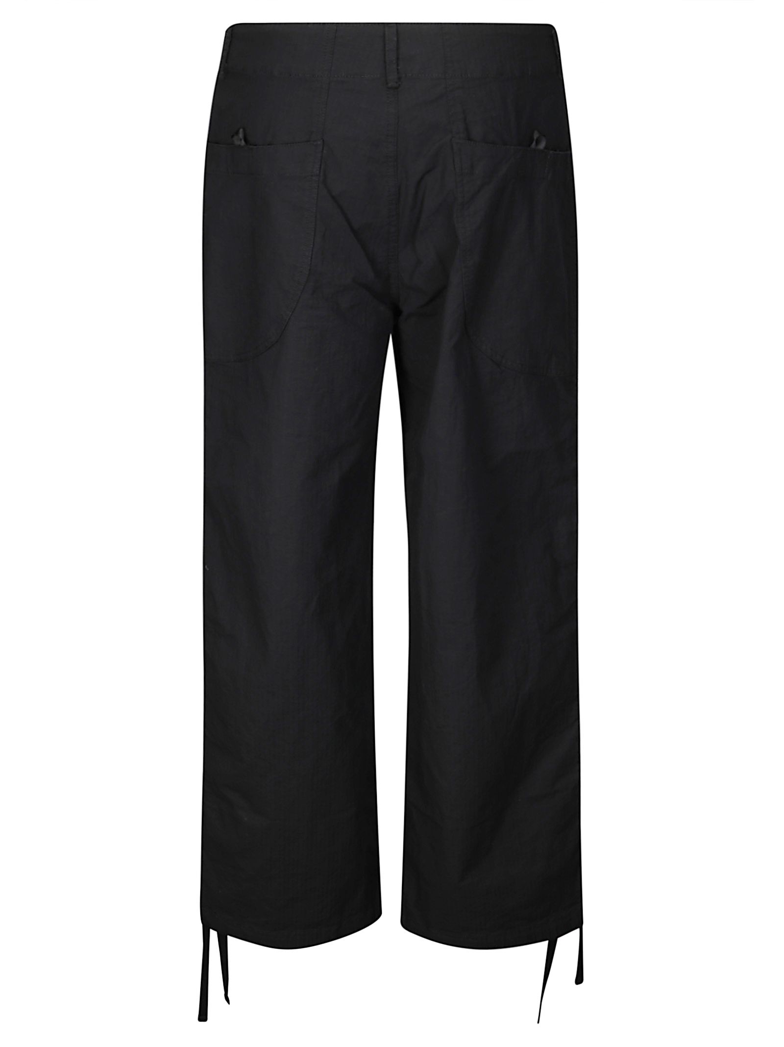 Pantaloni in cotone con logo ricamato, tasche laterali, tasche con zip e bottoni, passanti per la cintura e tasche sul retro.