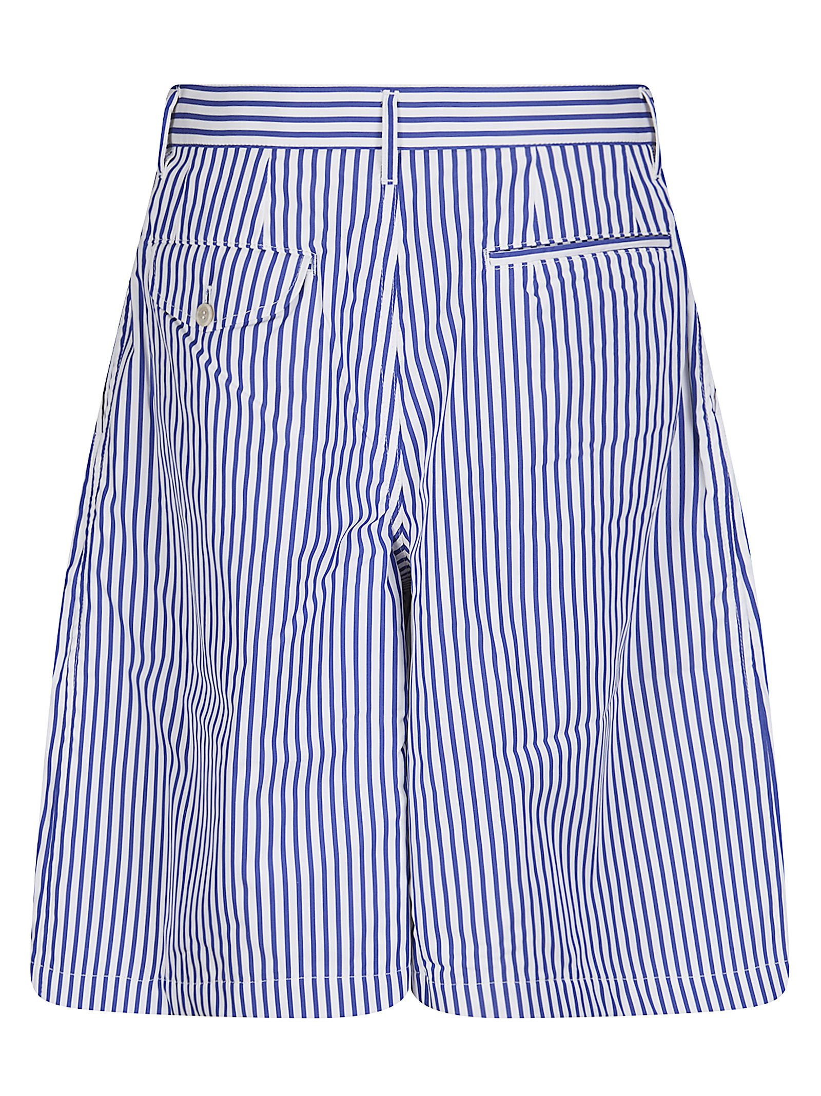 Pantaloni bermuda a righe con pinces, design con abbottonatura, passanti per cintura, gamba ampia