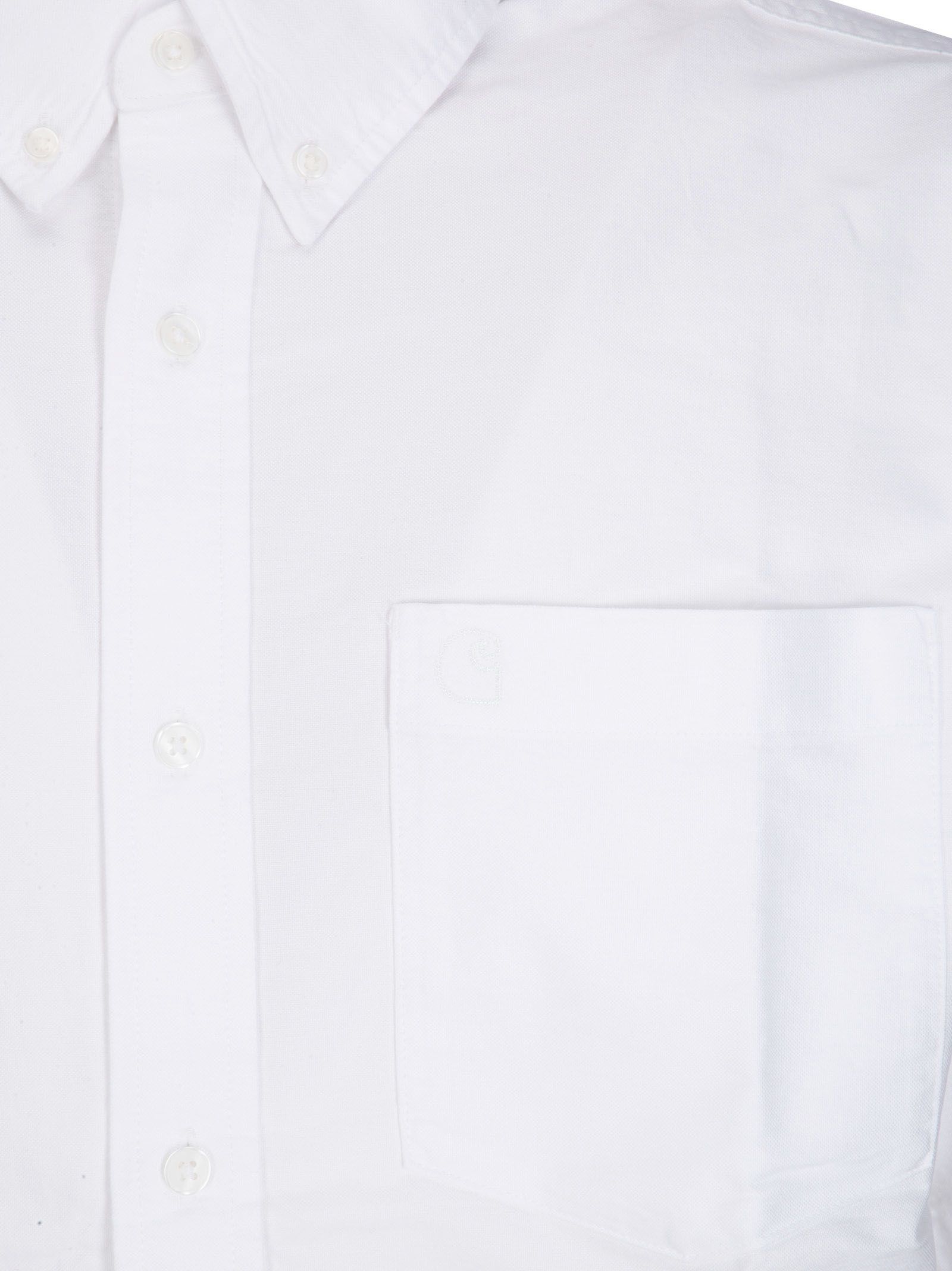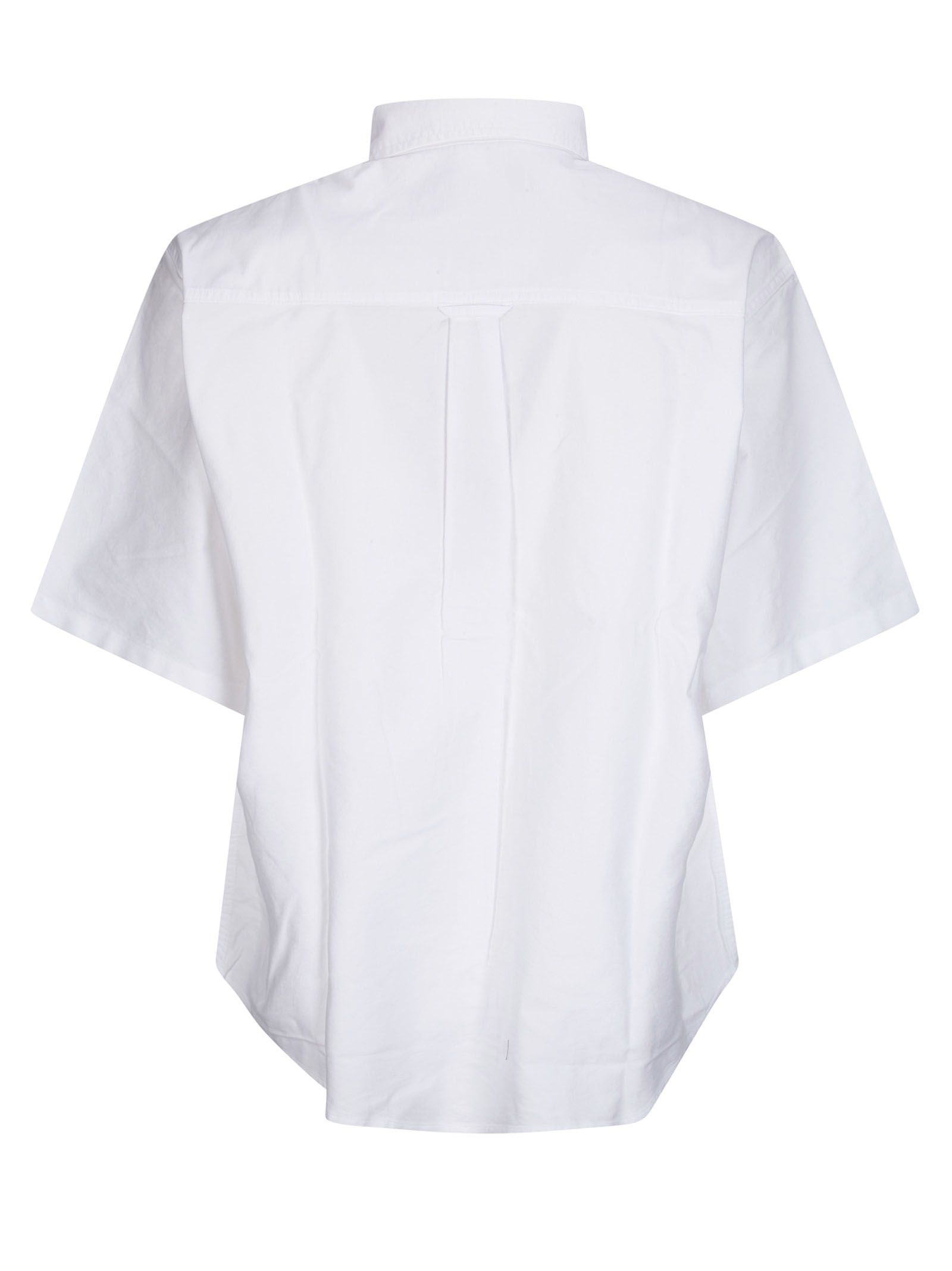 Camicia in cotone a maniche corte con colletto con bottoncini, chiusura frontale con bottoni, tasca sul petto con logo ricamato.