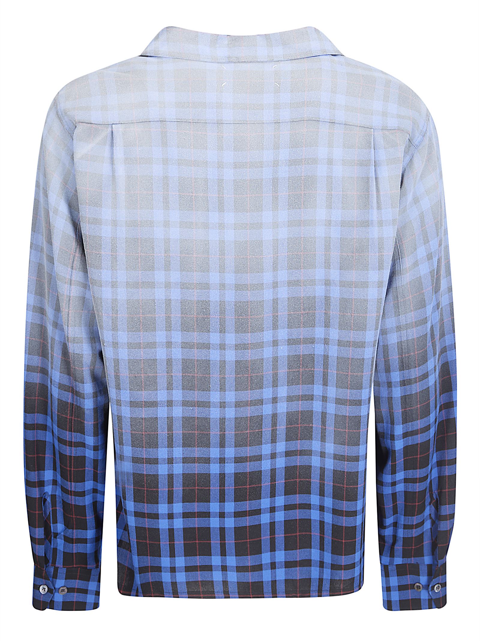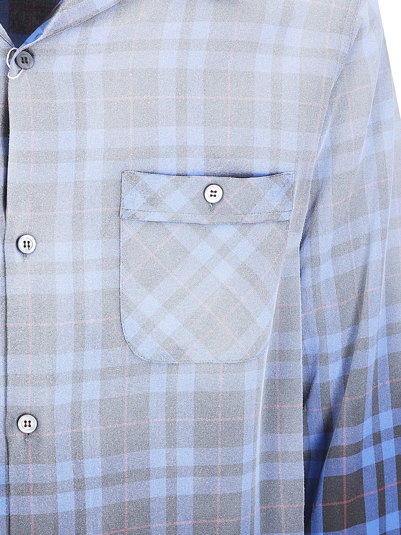 Camicia a maniche lunghe, trama a quadri, due tasche con patta sul petto, colletto a punta e chiusura con bottoni.
