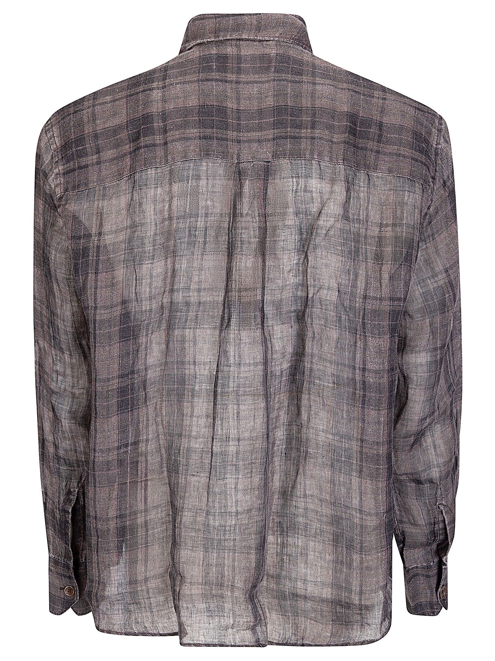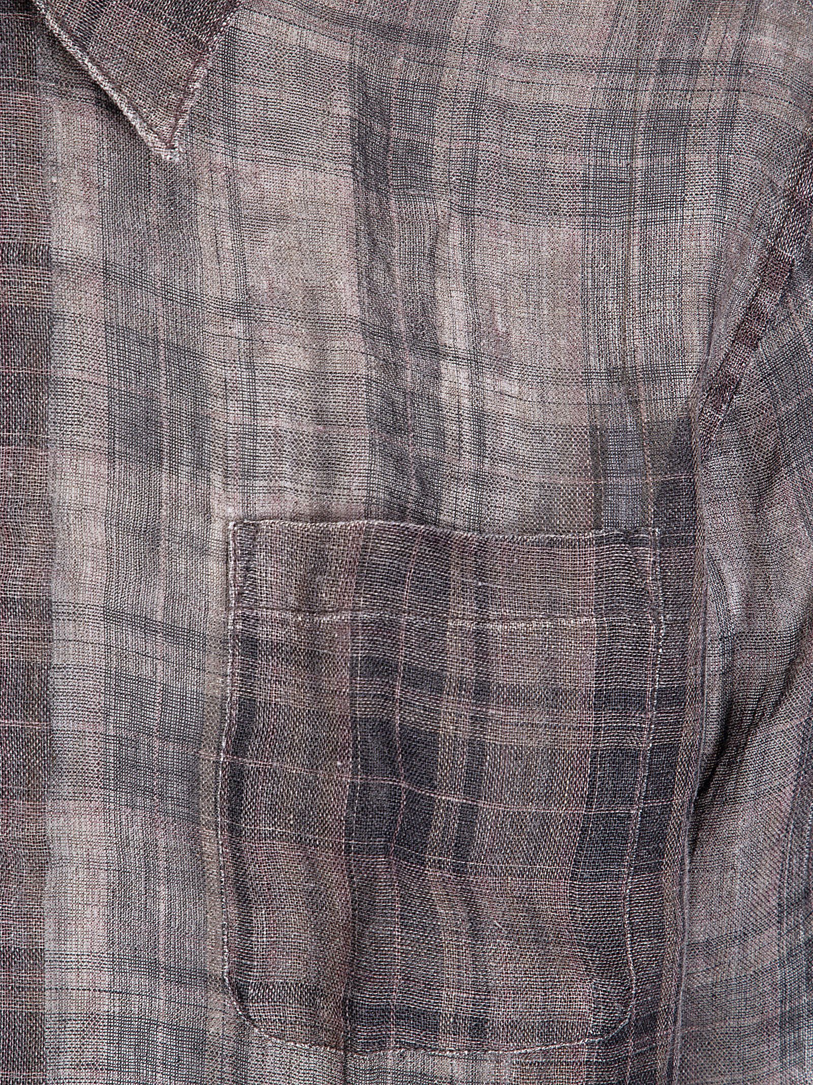 Camicia oversized in lino semi trasparente, colletto regolare, chiusura con bottoni, taschino frontale.