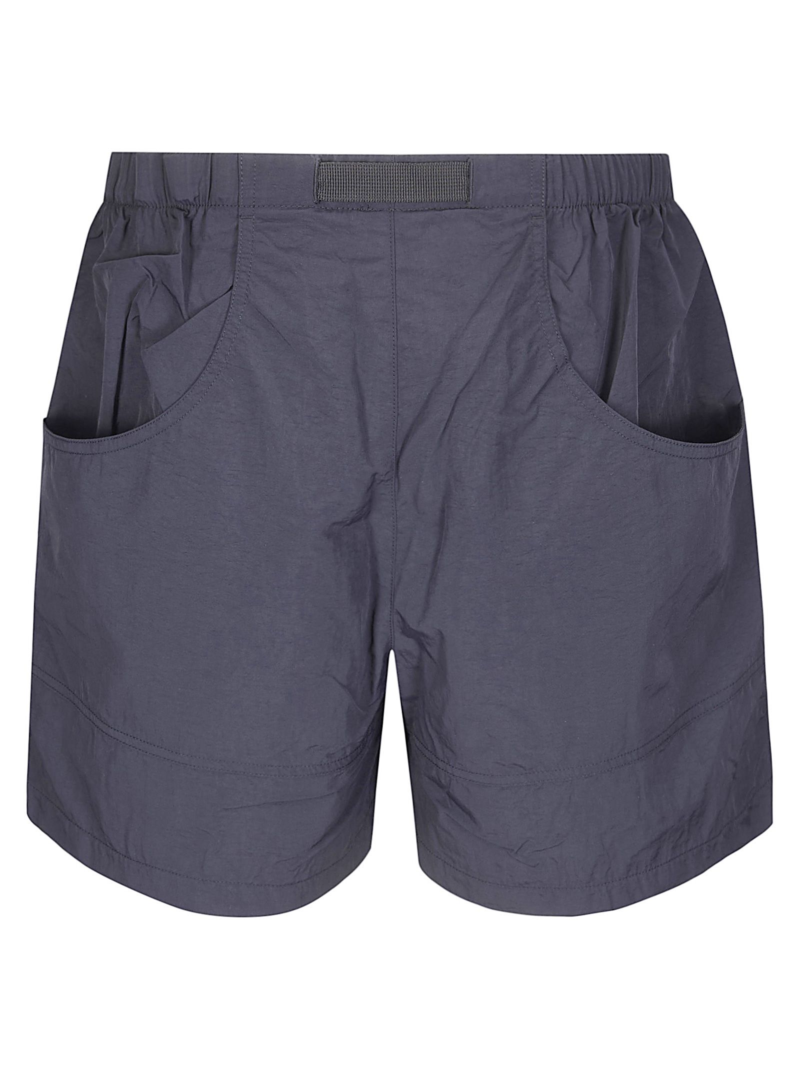 Pantaloni corti con vita elasticizzata e cintura, tasche frontali e posteriori, logo applicato frontale.