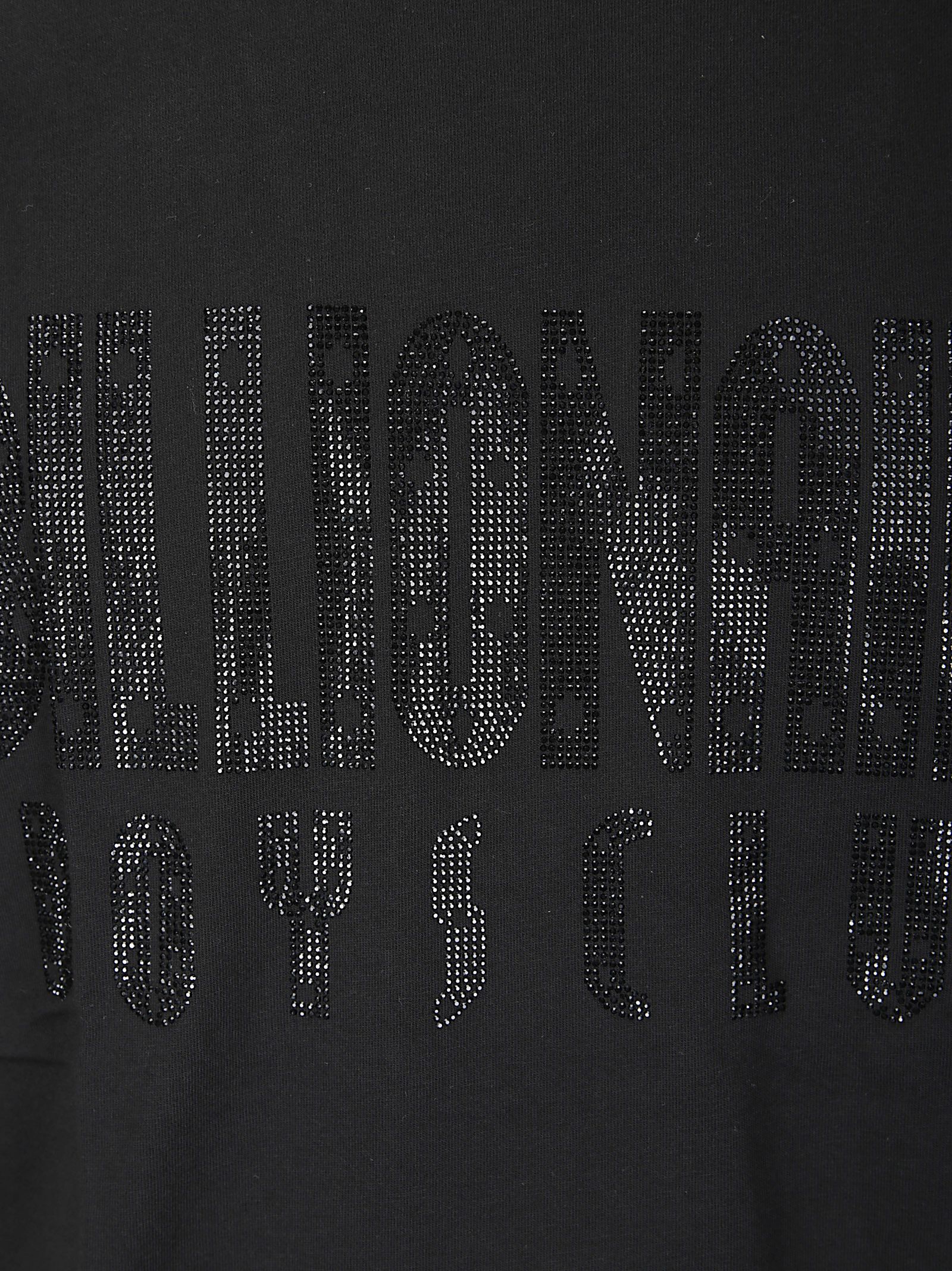 T-shirt girocollo, mezze maniche, scritta logo con strass frontale.
