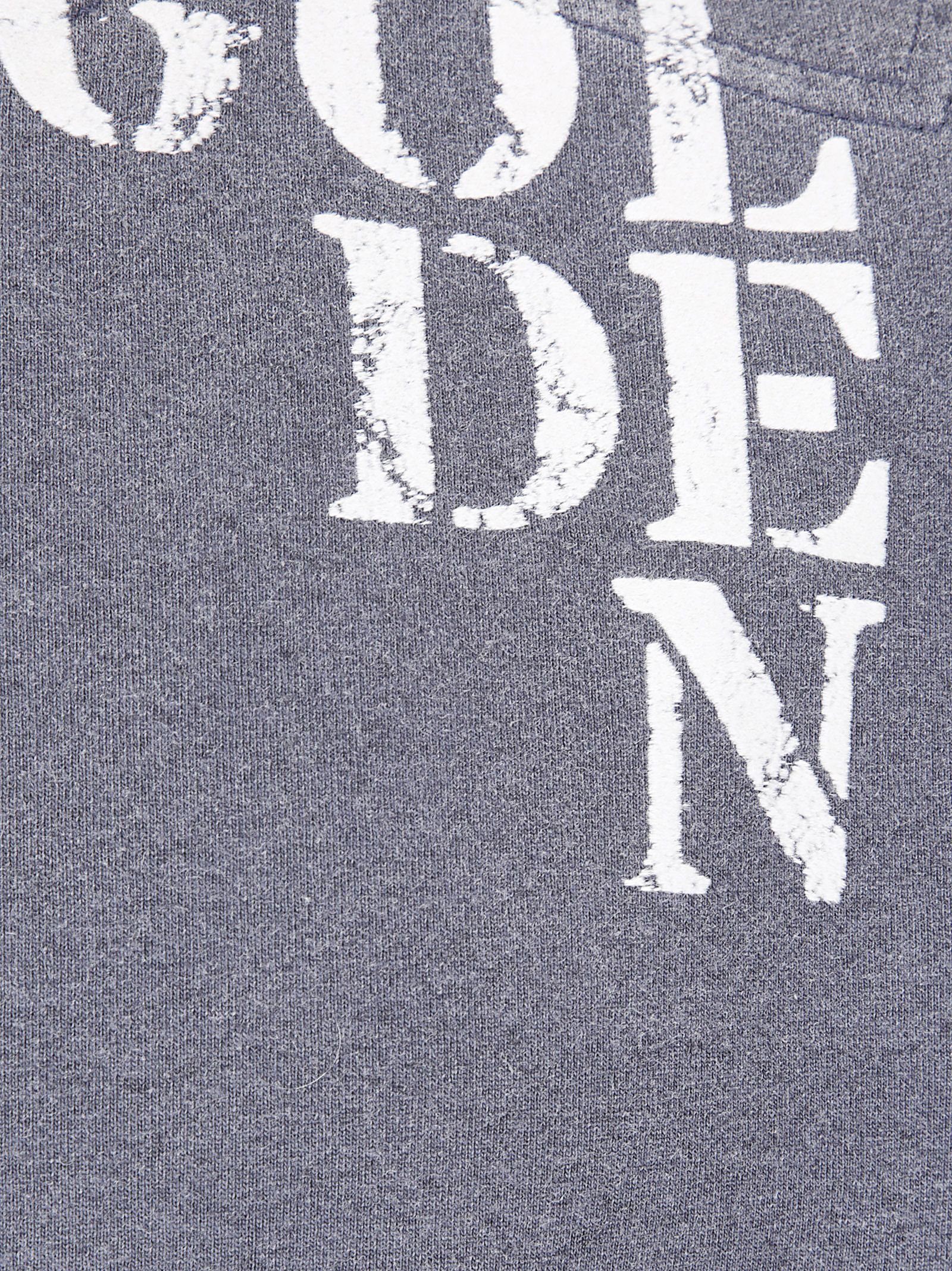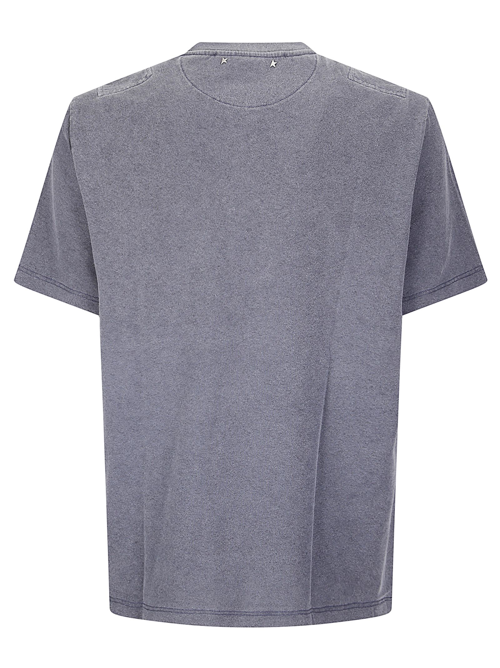 T-shirt girocollo, mezze maniche, stampa grafica sulla spalla, decorazioni a stella metalliche.