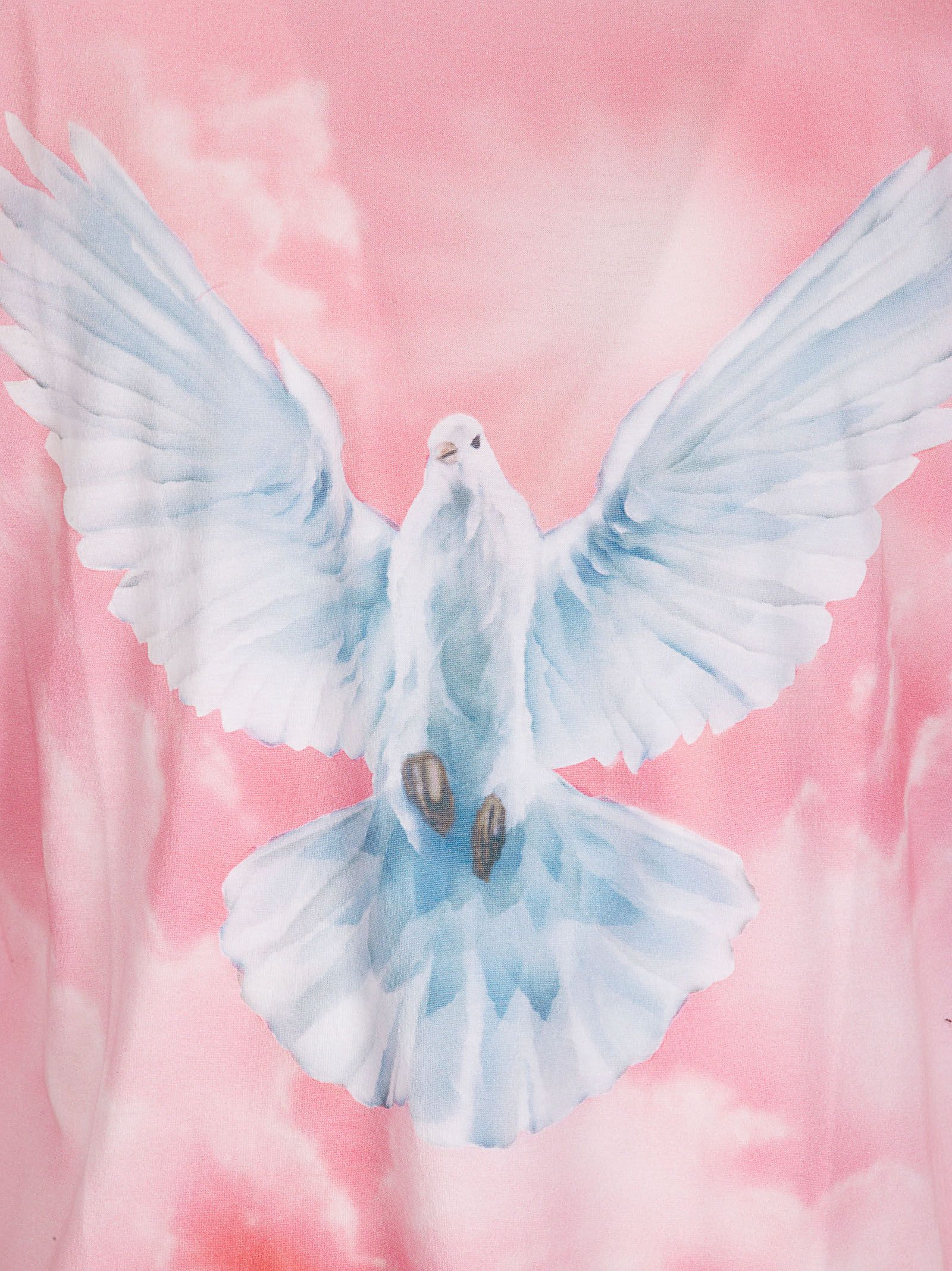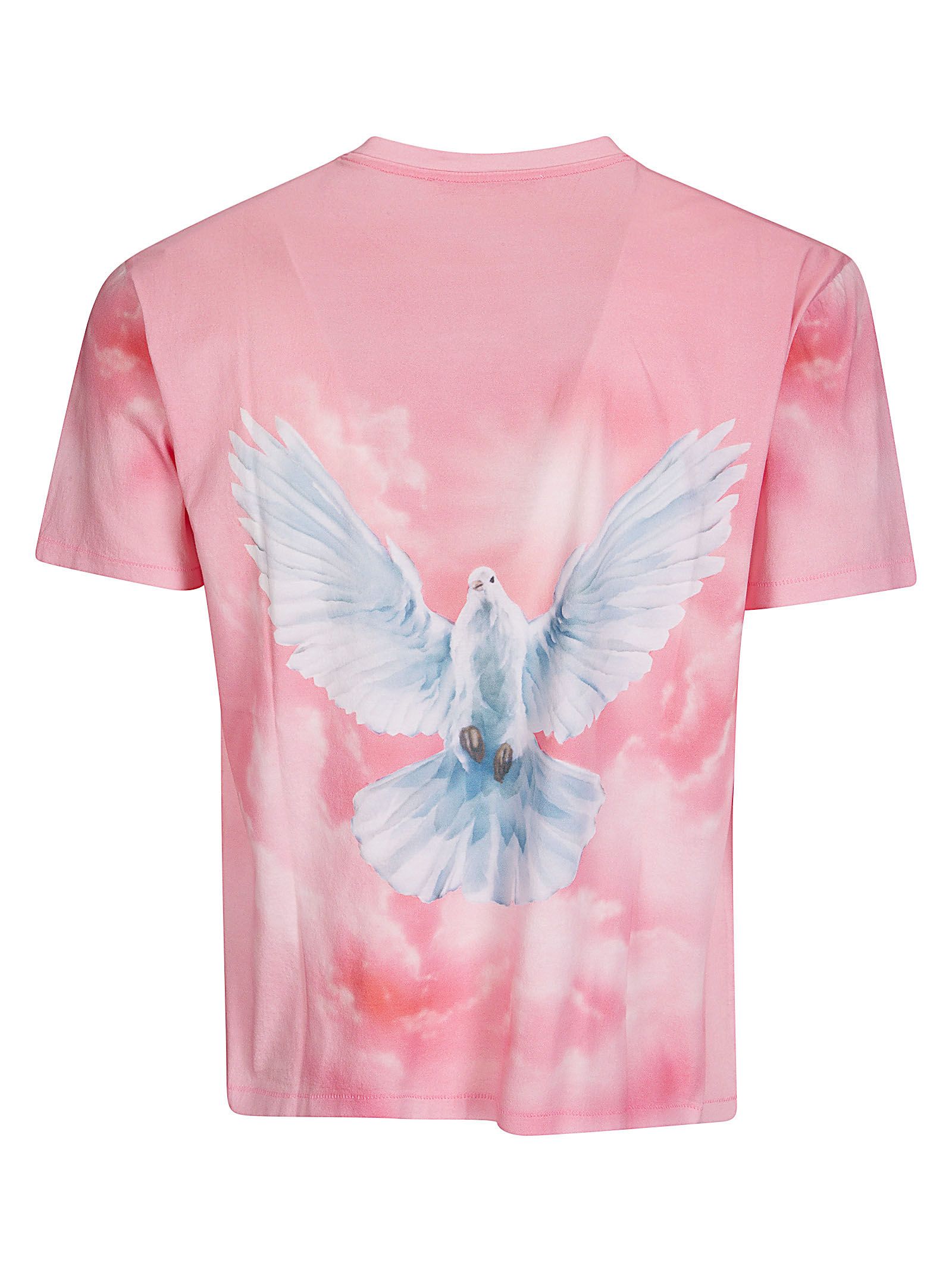Tshirt in cotone leggero con stampa frontale, tessuto lavaggio medio, boxy fit, colletto ampio.