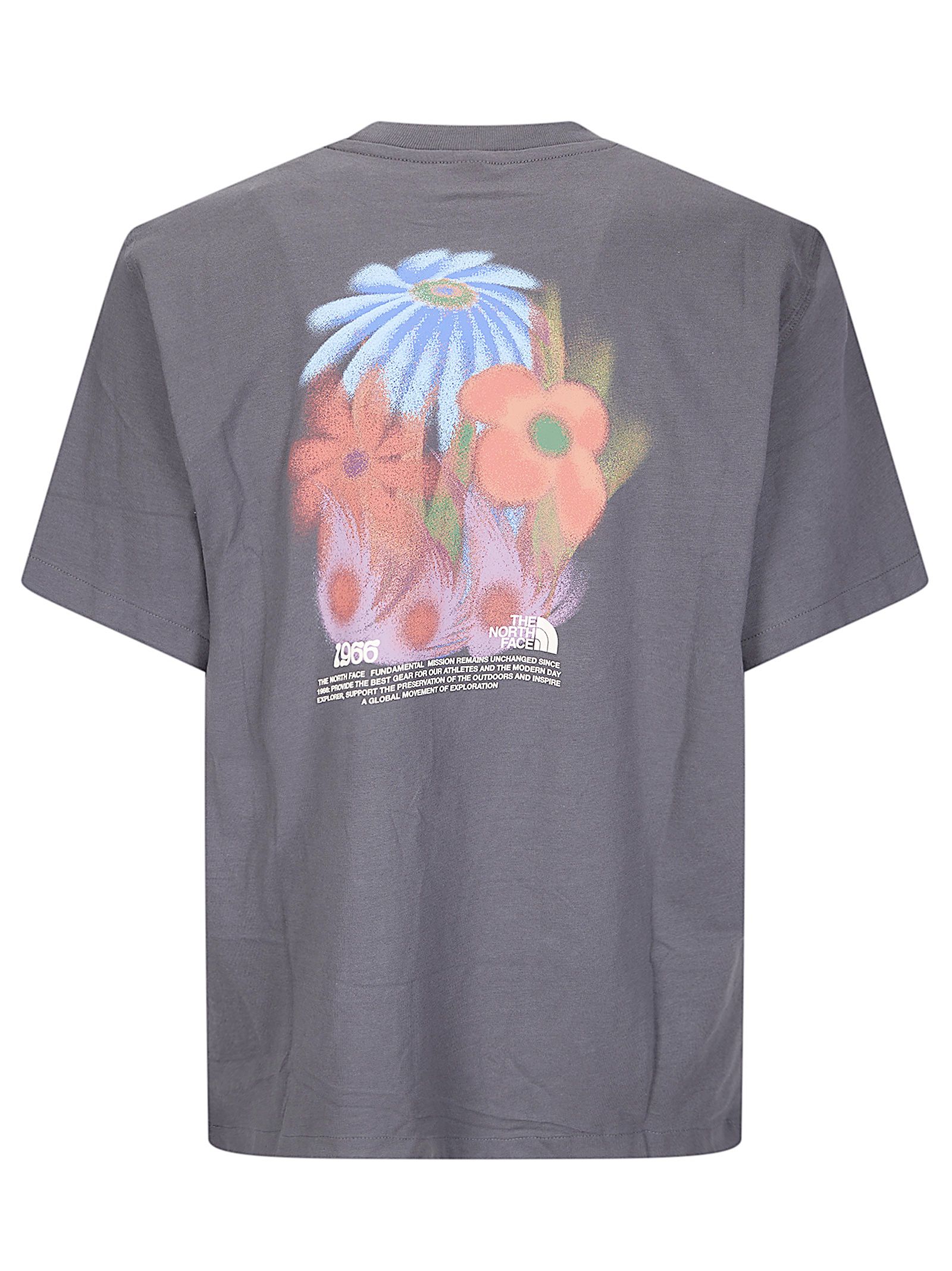 Tshirt girocollo, mezze maniche, logo sul petto, stampa grafica sul retro, taglio rilassato