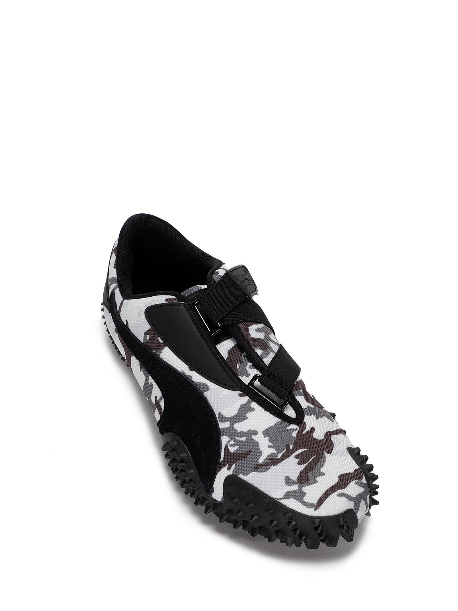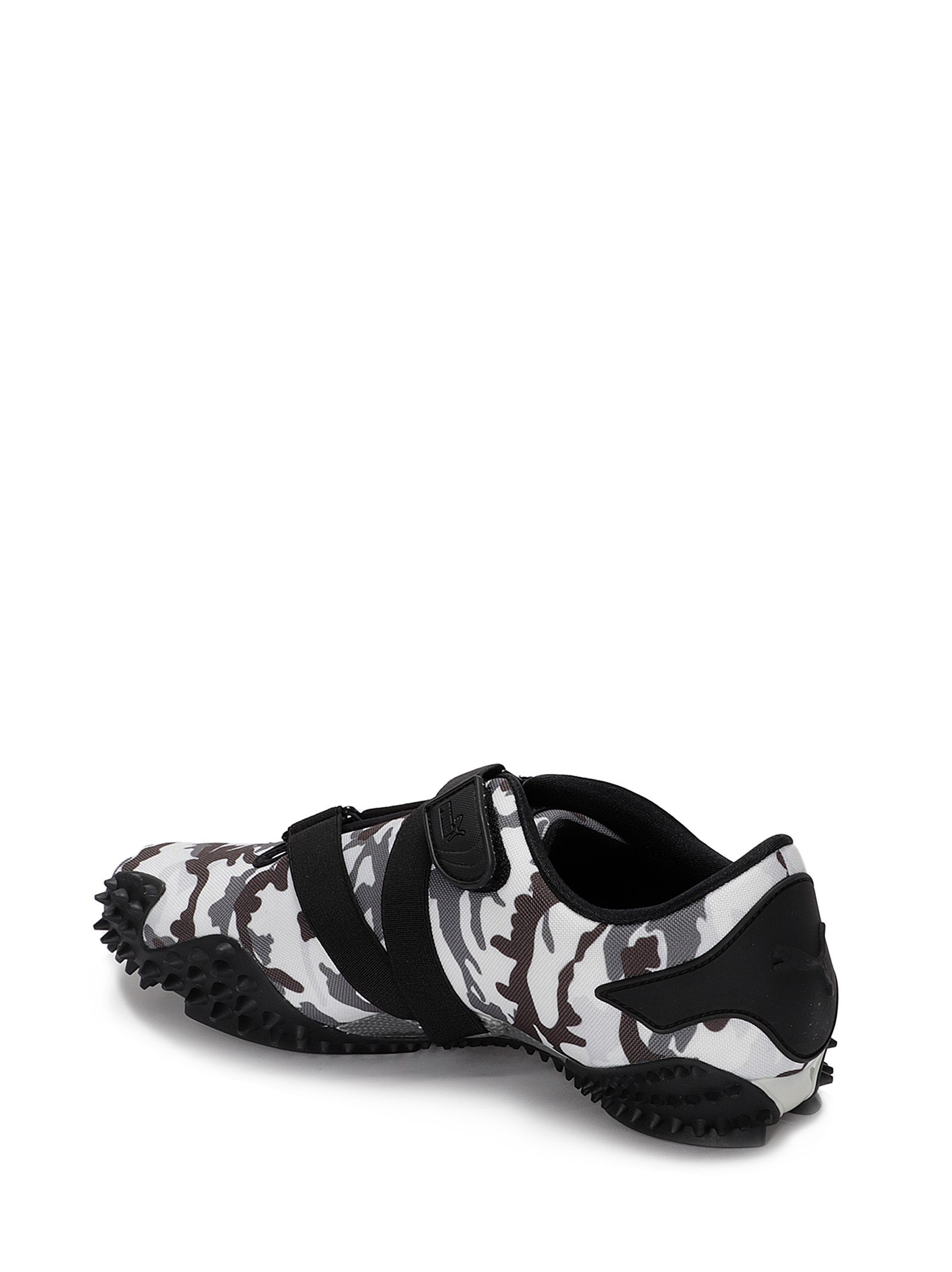 Sneakers Puma Mostro Camo bianche e nere, suola in gomma con punte e chisura superiore con strap, caviglia bassa.